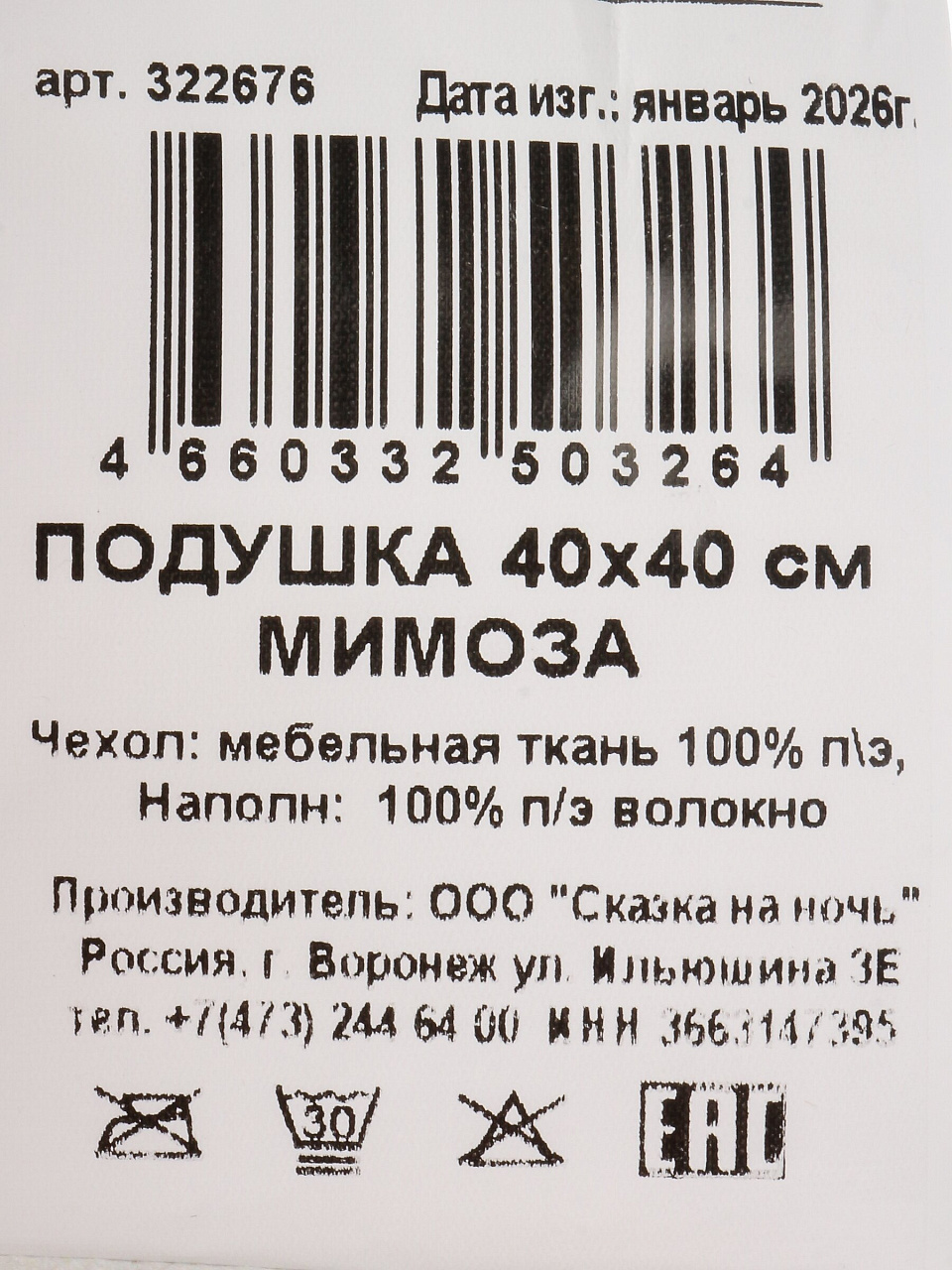 Вы можете приобрести «Подушка декоративная 40х40 см, Мимоза, 100%пэ» и другие товары в нашем интернет-магазине в Таганроге по низким ценам и с бесплатным самовывозом.