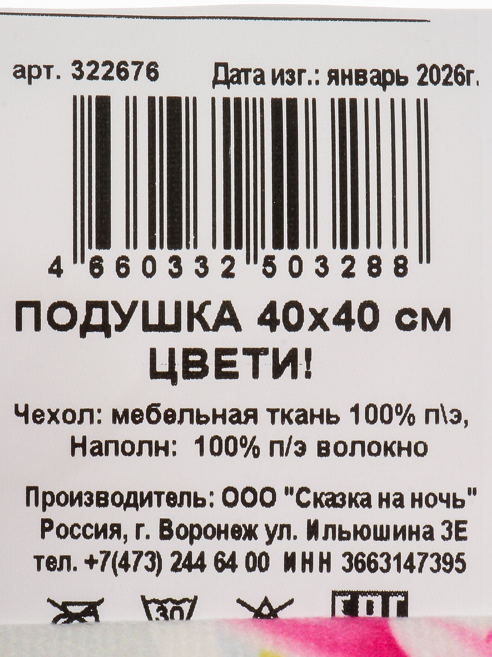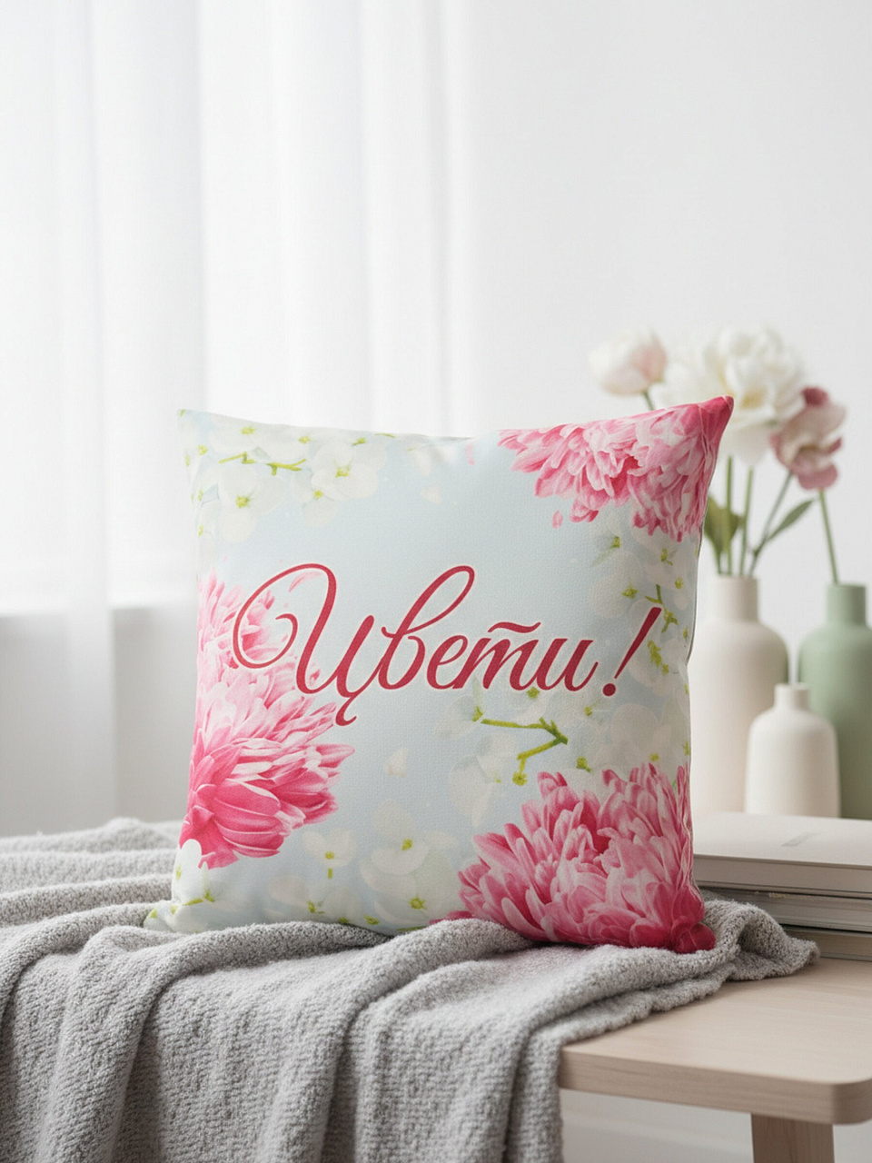 Декоративная подушка 40х40 см «Цвети!»: стильный акцент для интерьера, гипоаллергенный полиэстер, идеальный выбор для дома, дачи или подарка.