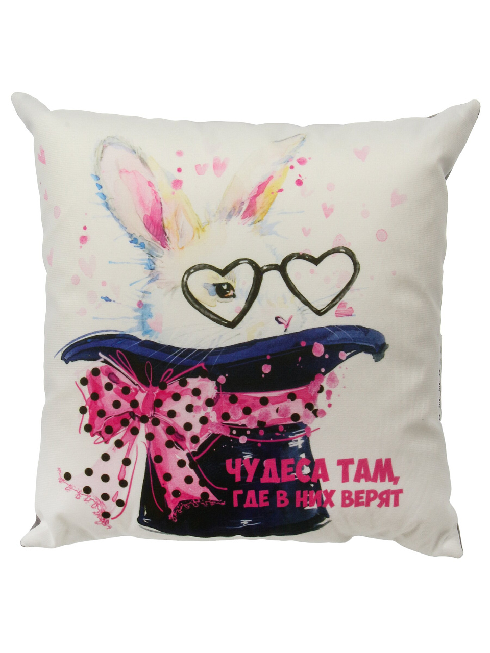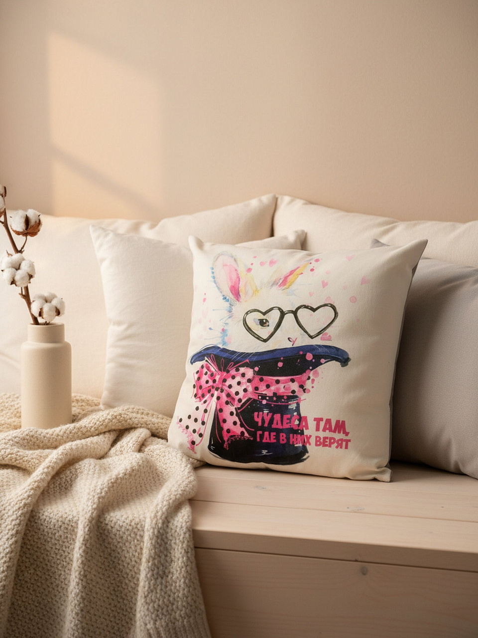 Подушка декоративная 40х40 см «Кролик в шляпе»: уют, стиль и практичность для вашего дома — выгодное решение для подарка и декора, подходит для детских и взрослых интерьеров.