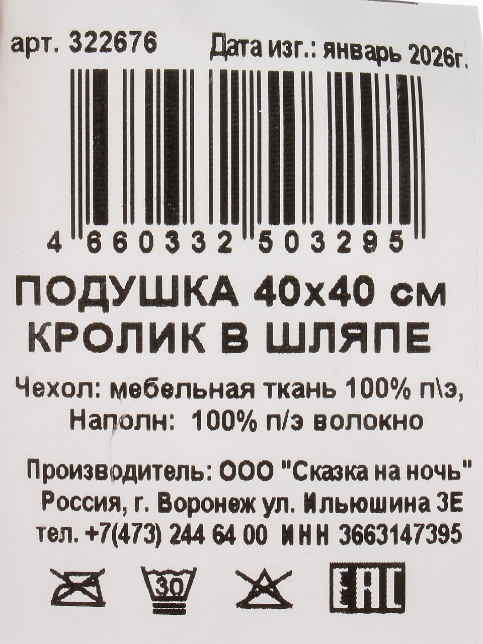 Вы можете приобрести «Подушка декоративная 40х40 см, Кролик в шляпе, 100%пэ» и другие товары в нашем интернет-магазине в Таганроге по низким ценам и с бесплатным самовывозом.