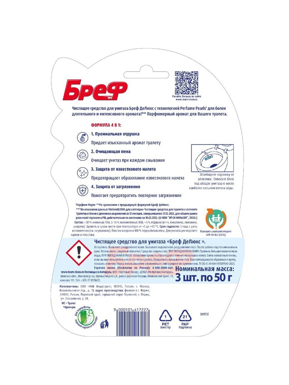 Бреф Делюкс — подвесной туалетный блок для унитаза с технологией Перфюм Перлс для более длительного и интенсивного аромата!