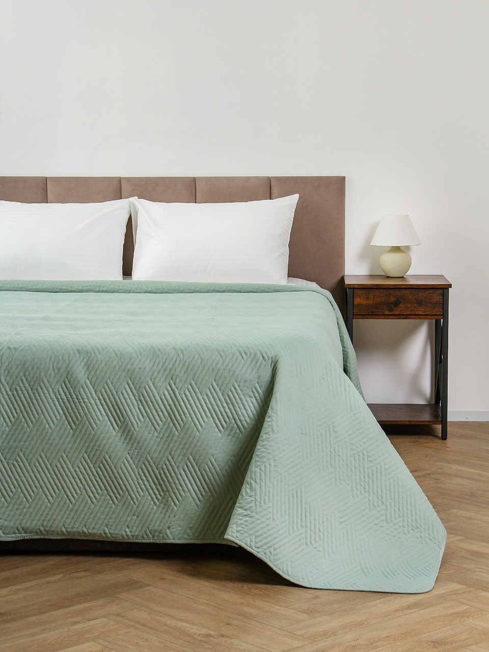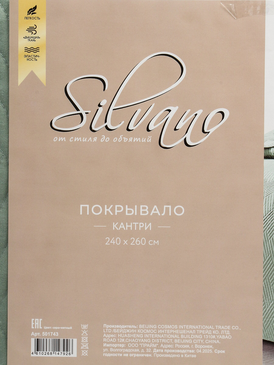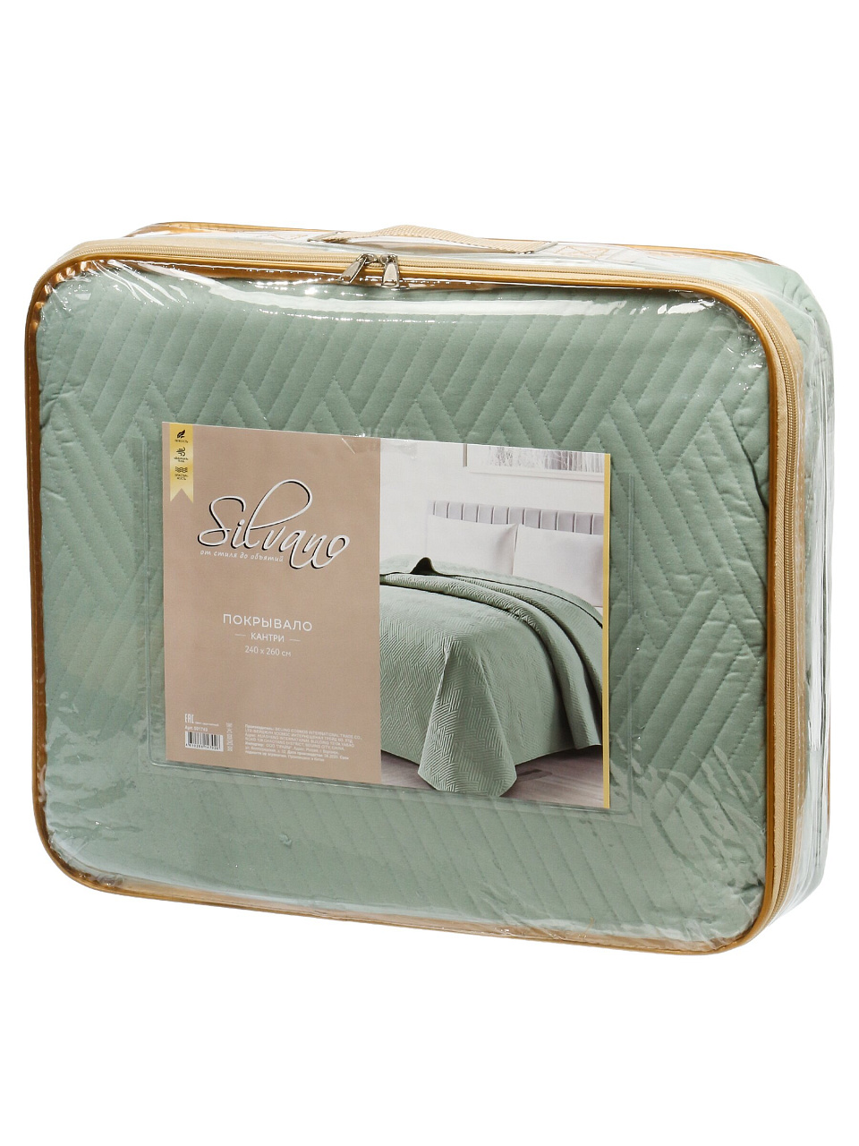 Покрывало евро, 240х260см, 100%пэ, Silvano, Кантри, серо-мятное