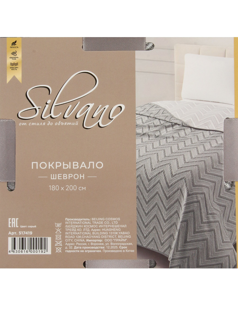 Вы можете приобрести «Покрывало евро, 180х200 см, 100%пэ, двустороннее, Silvano, Шеврон, серый» и другие товары в нашем интернет-магазине в Санкт-Петербургe по низким ценам и с бесплатным самовывозом.