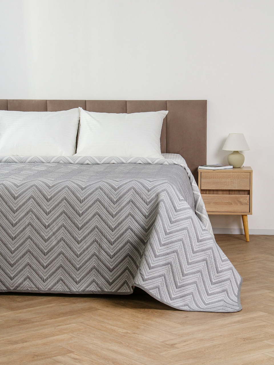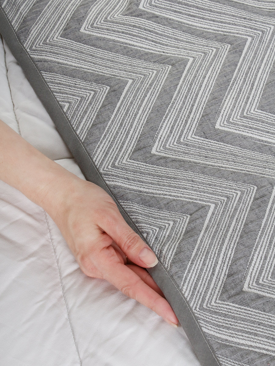 - Универсальный дизайн 2-в-1: меняйте облик спальни или гостиной, просто перевернув покрывало, благодаря двусторонней структуре с геометрическим узором «шеврон».