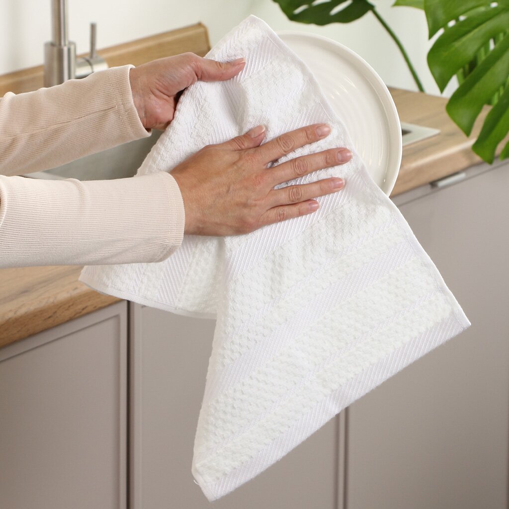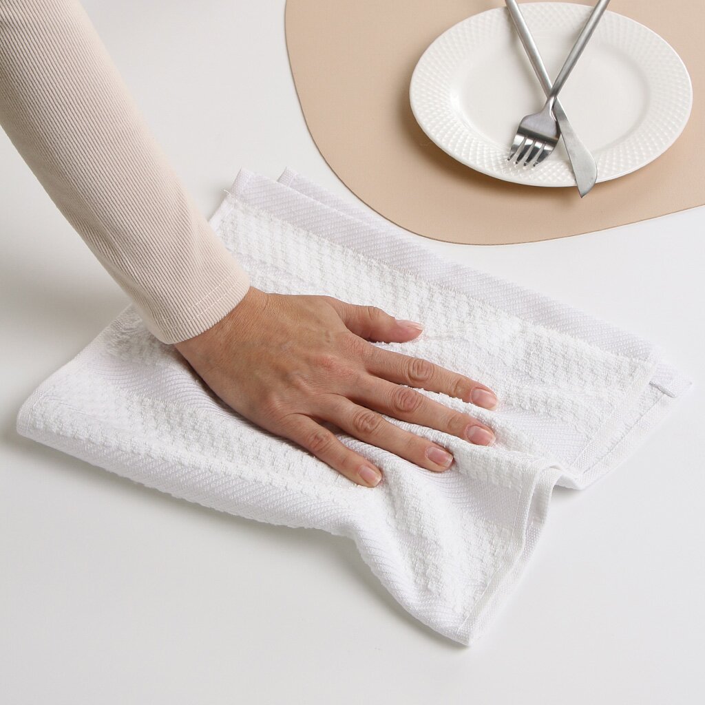 Махровая фактура обеспечивает лучшее впитывание влаги, быстро сохнет, не оставляет ворса, сохраняет мягкость после стирки — идеально для кухни и дачи.
