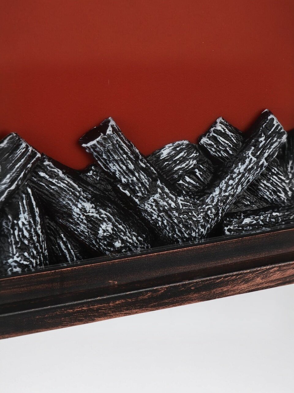 - Композиция из медленно “тлеющих” поленьев освещается экономичными и безопасными светодиодами, имитирующими настоящее пламя. Благодаря этому декоративный камин не нагревается и не выделяет дым.