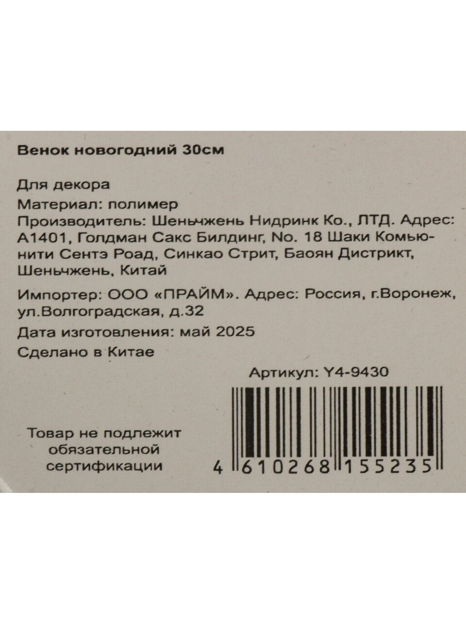 Вы можете приобрести «Венок новогодний 30 см, литой, с декором, Y4-9430» и другие товары в нашем интернет-магазине в Старом Осколе по низким ценам и с бесплатным самовывозом.
