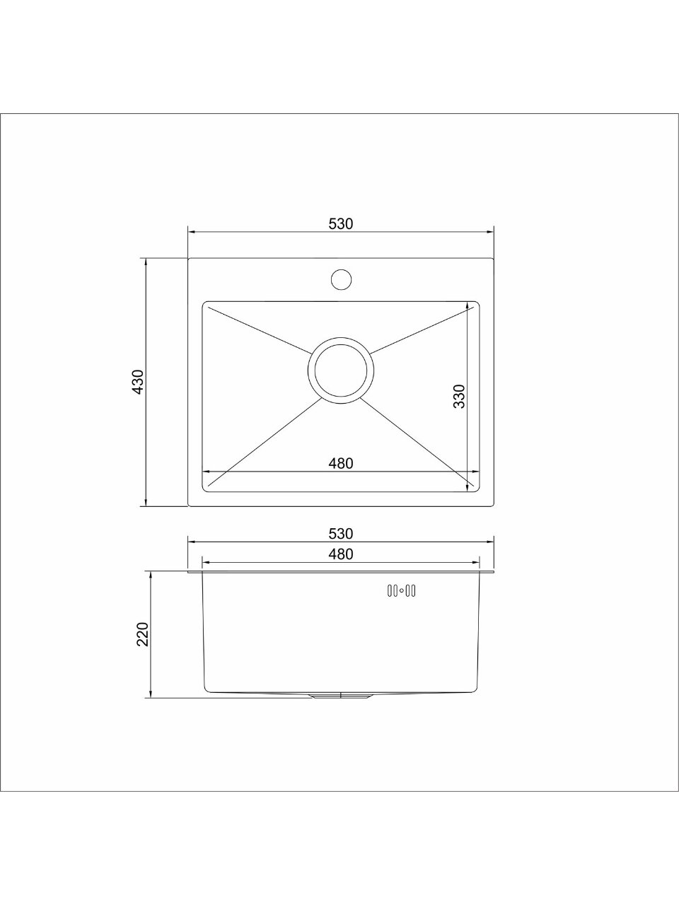 Мойка 53х43 см — оптимальный вариант для небольших кухонь. Глубина 22 см позволяет комфортно мыть посуду, не занимая лишнего пространства. Подходит для стандартных и компактных шкафов.