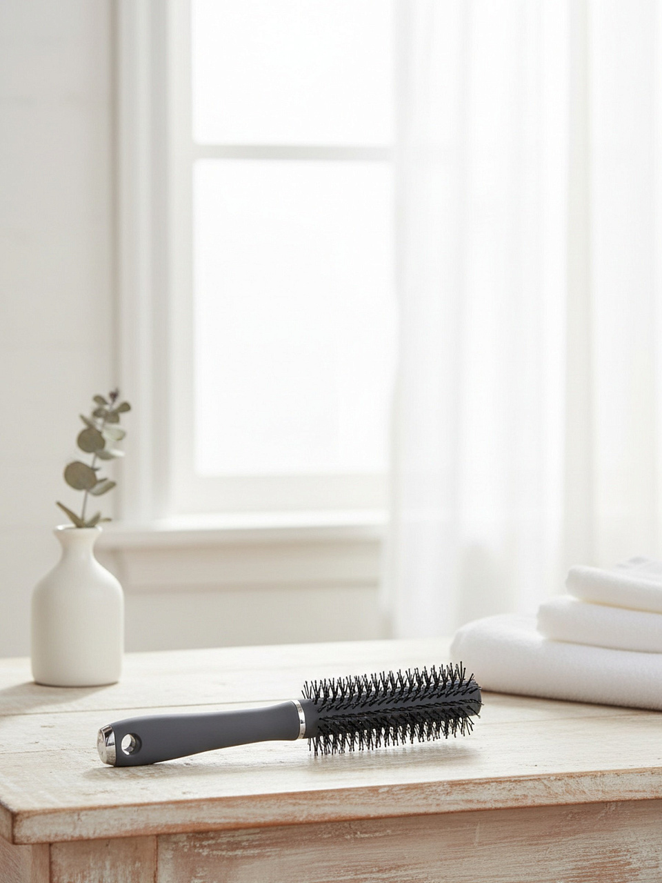 Брашинг Studio style подходит для всех типов волос: прямых, волнистых, тонких, окрашенных — благодаря мягкой графитовой щетине и универсальному диаметру.