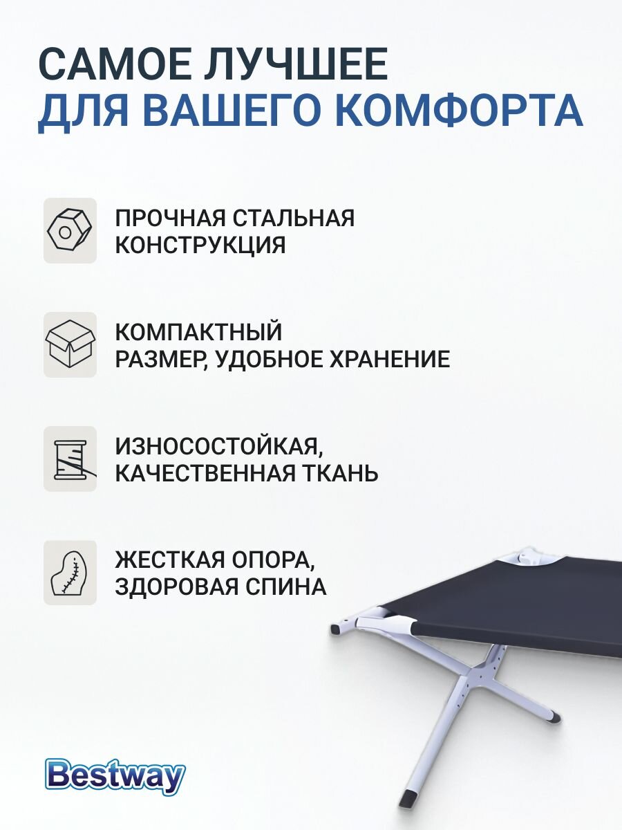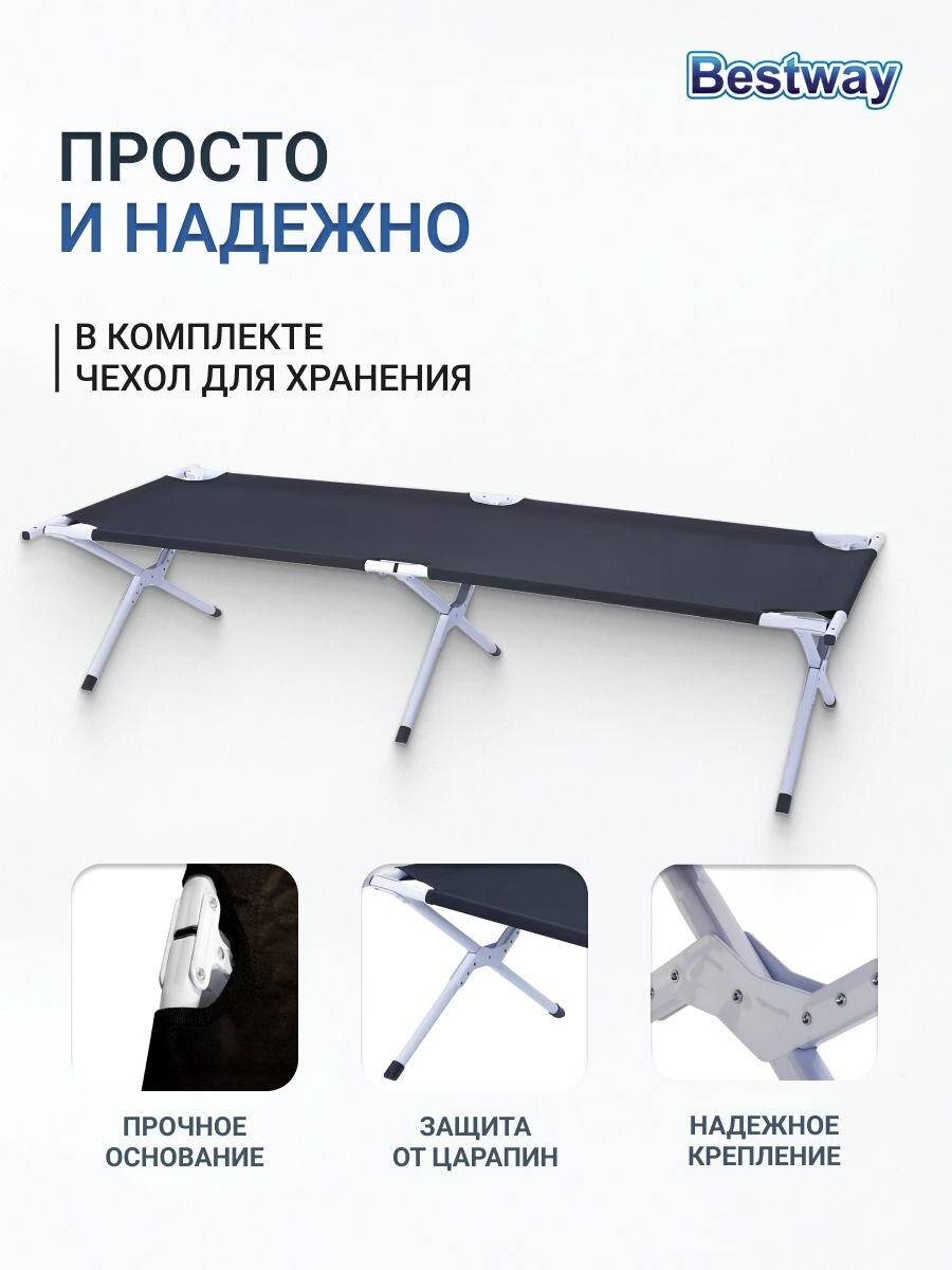 Выбирая раскладушку Bestway, клиент получает удобное, прочное и стильное решение для организации комфортного отдыха дома, на даче или в поездках, а также экономит пространство и время на подготовку дополнительного спального места.