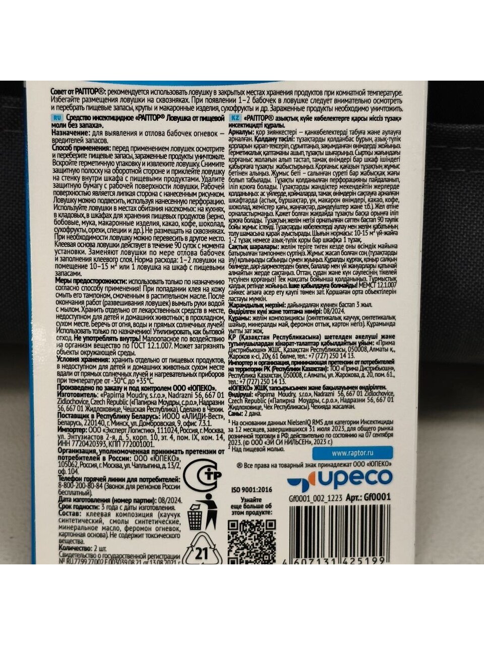 Вы можете приобрести «Репеллент от моли пищевой, пластина, ловушка, Раптор, 2 шт» и другие товары в нашем интернет-магазине в Таганроге по низким ценам и с бесплатным самовывозом.