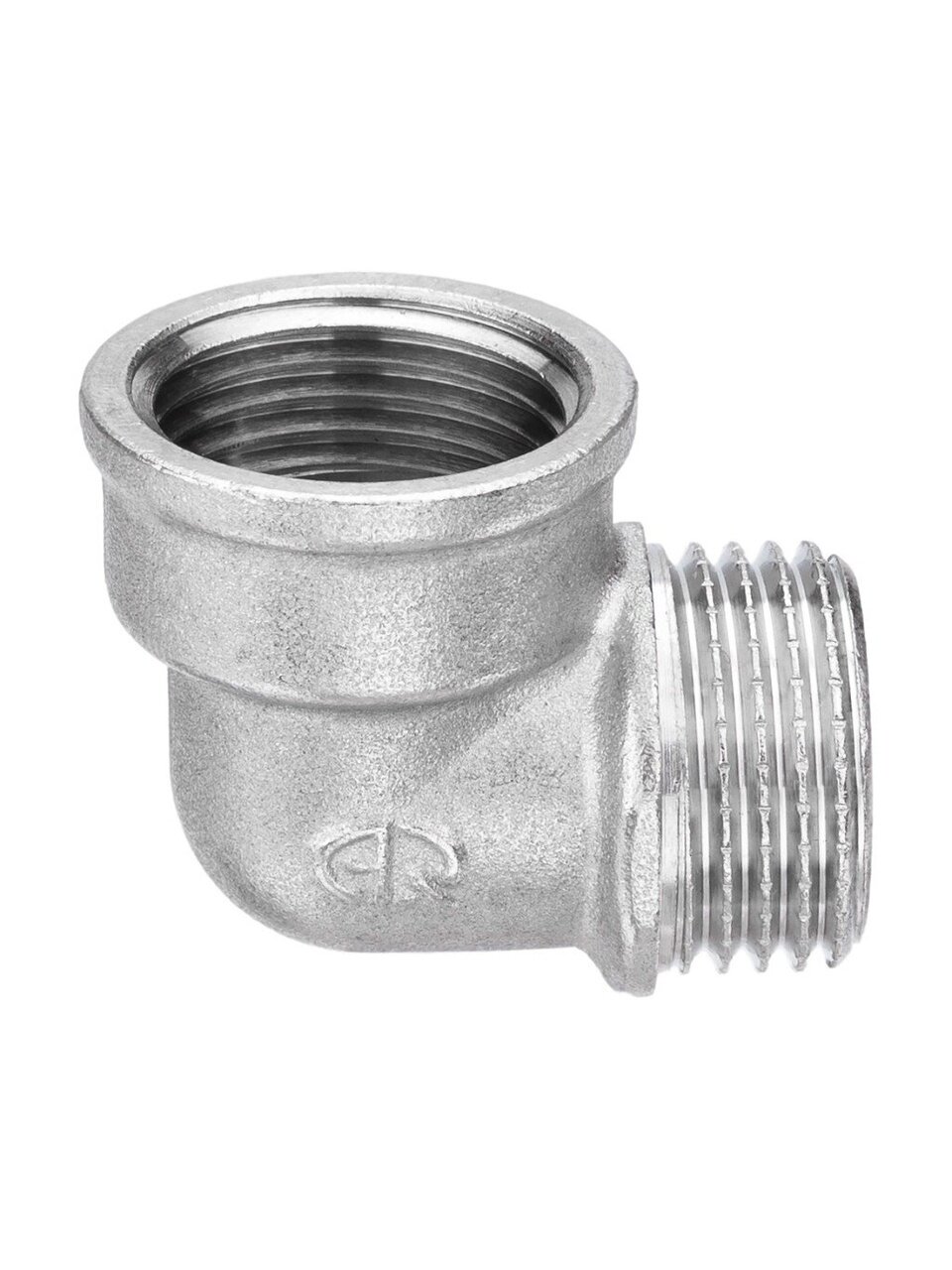 Диаметр подключения — 1 дюйм, угол — 90°, присоединение г-ш: одна сторона внутренняя резьба, вторая — наружная. Это универсальный вариант для большинства инженерных систем.