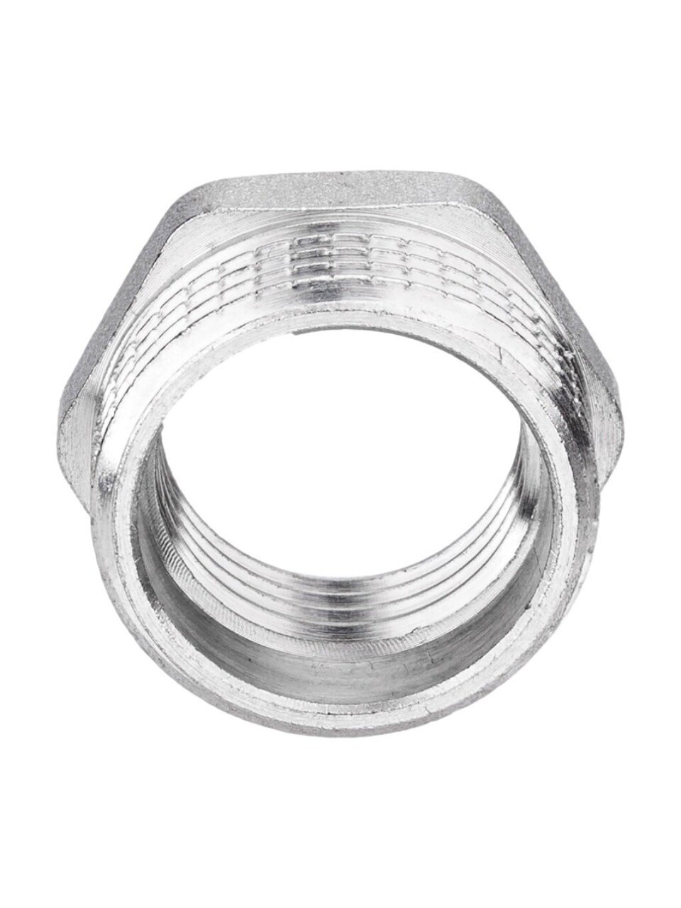 Футорка рассчитана на соединение элементов с резьбами 1 1/4'' и 2'', что позволяет использовать ее для перехода между разными типами труб в системах водоснабжения.