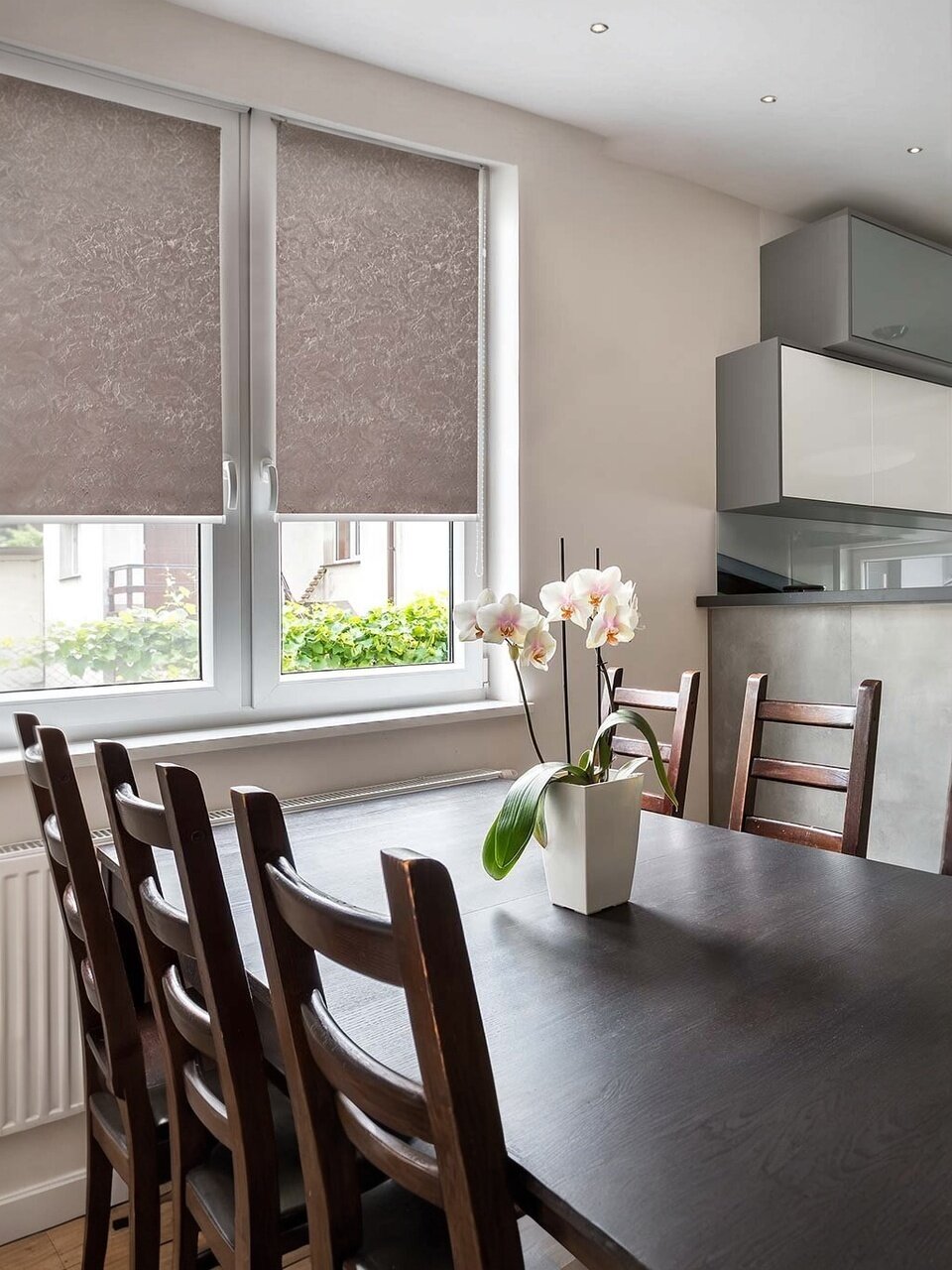 Специальная антистатическая пропитка ткани облегчает уход и защищает от пыли и загрязнений. Особые свойства ткани позволяют использовать рулонные шторы во влажных помещениях, таких, как кухня или ванная.