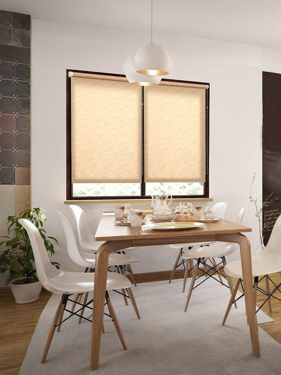 Штора рулонная регулирует освещение комнаты, опускается до любого желаемого уровня.
