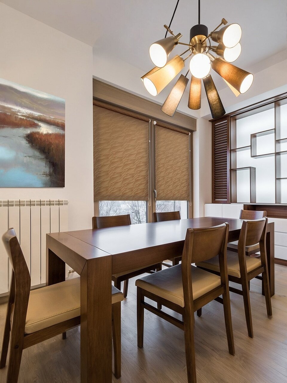Штора рулонная регулирует освещение комнаты, опускается до любого желаемого уровня.