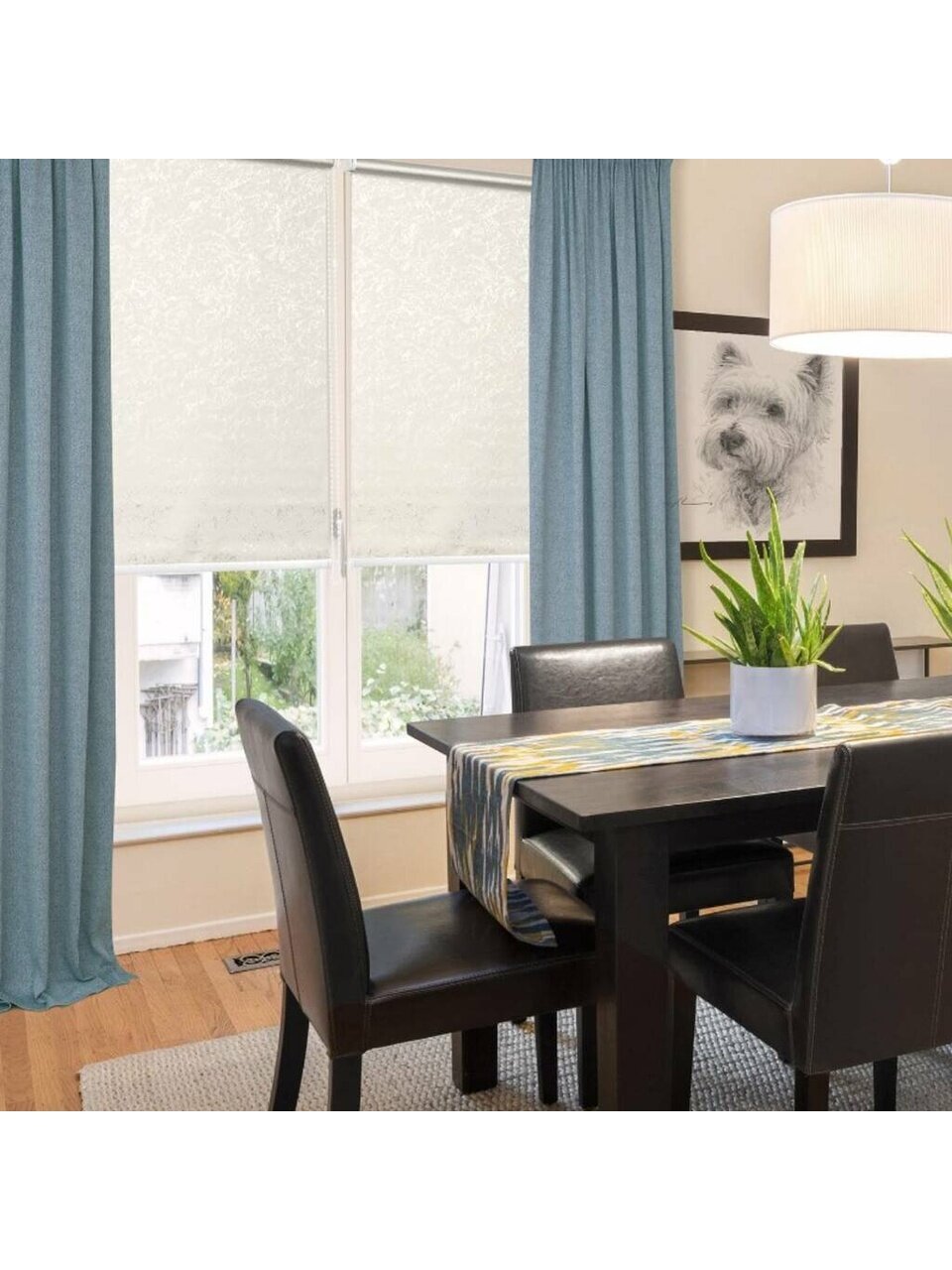 Штора рулонная регулирует освещение комнаты, опускается до любого желаемого уровня.