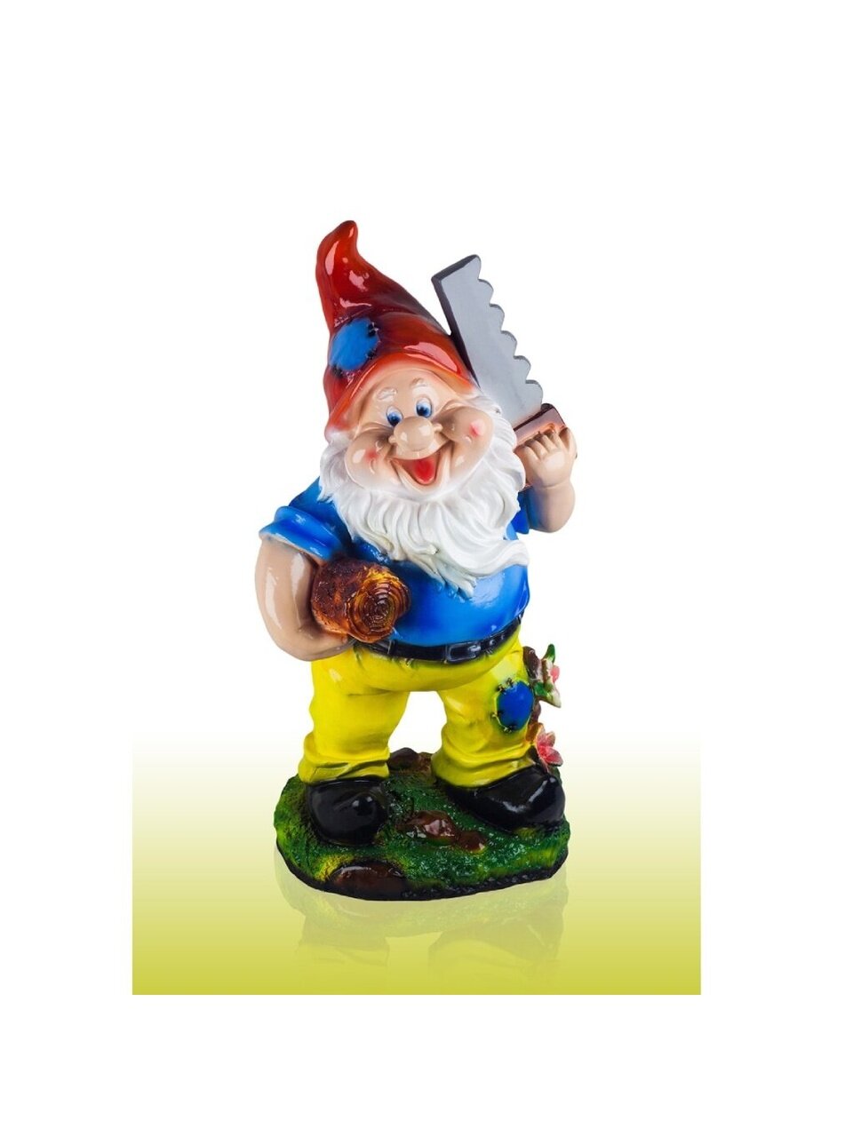 - Эстетика: Садовая фигурка в виде гнома с пилой добавит игривости и сказочности вашему участку, привлекая внимание гостей и создавая позитивное настроение.
