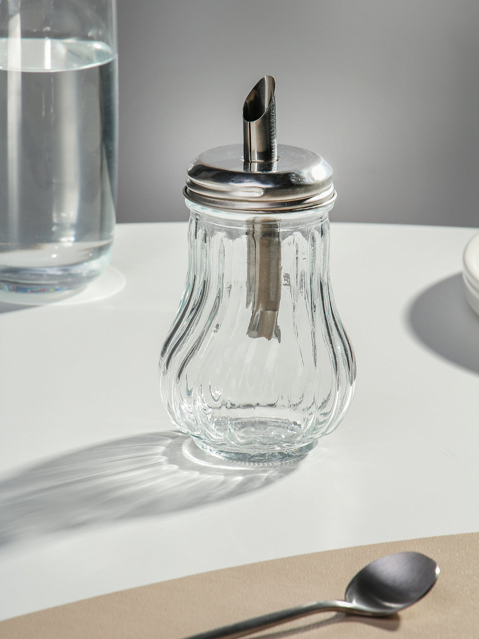 Сахарница изготовленная из первоклассной нержавеющей стали и стекла, оснащена дозатором. Эксклюзивный дизайн, эстетичность и функциональность сахарницы делает ее незаменимой на любой кухне.