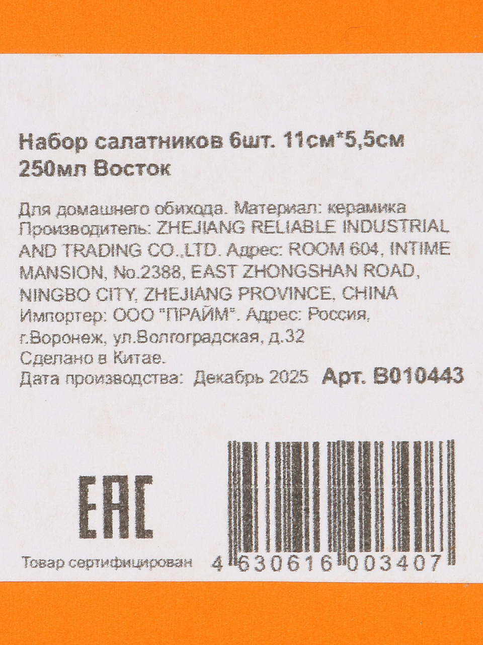 Вы можете приобрести «Набор салатников 6 шт, 11х5.5 см, 250 мл, Восток, B010443» и другие товары в нашем интернет-магазине в Ярославле по низким ценам и с бесплатным самовывозом.
