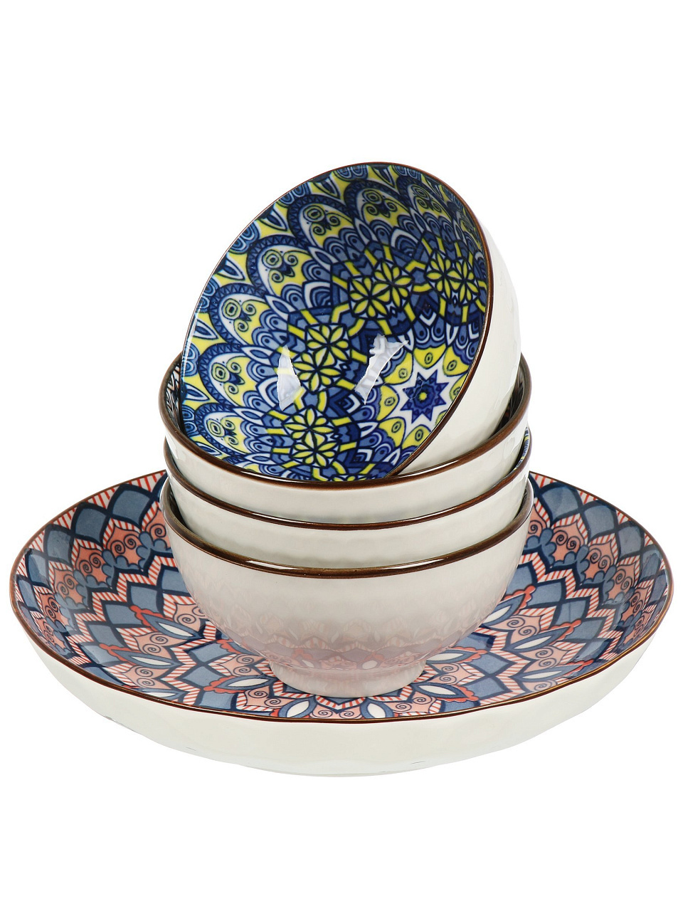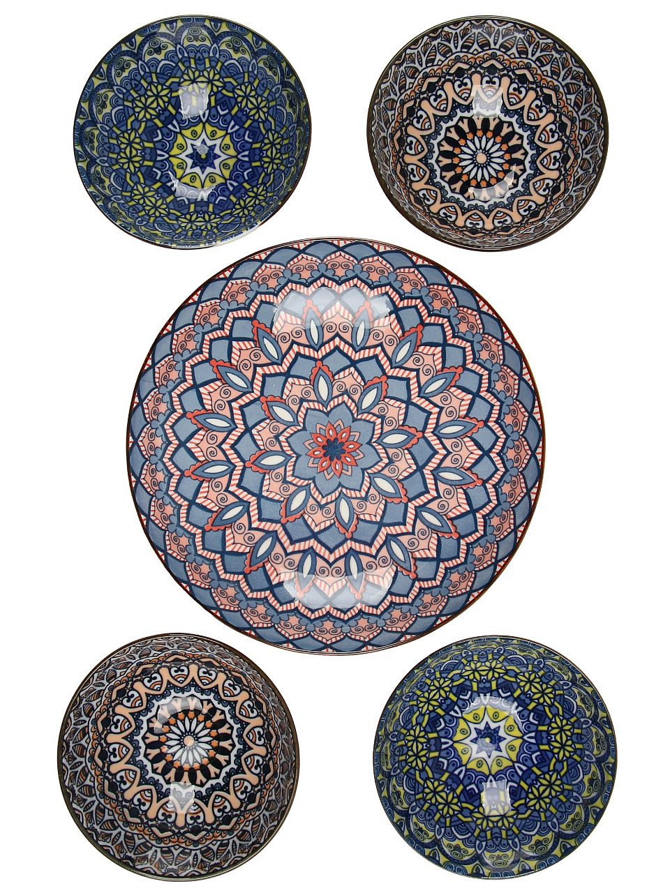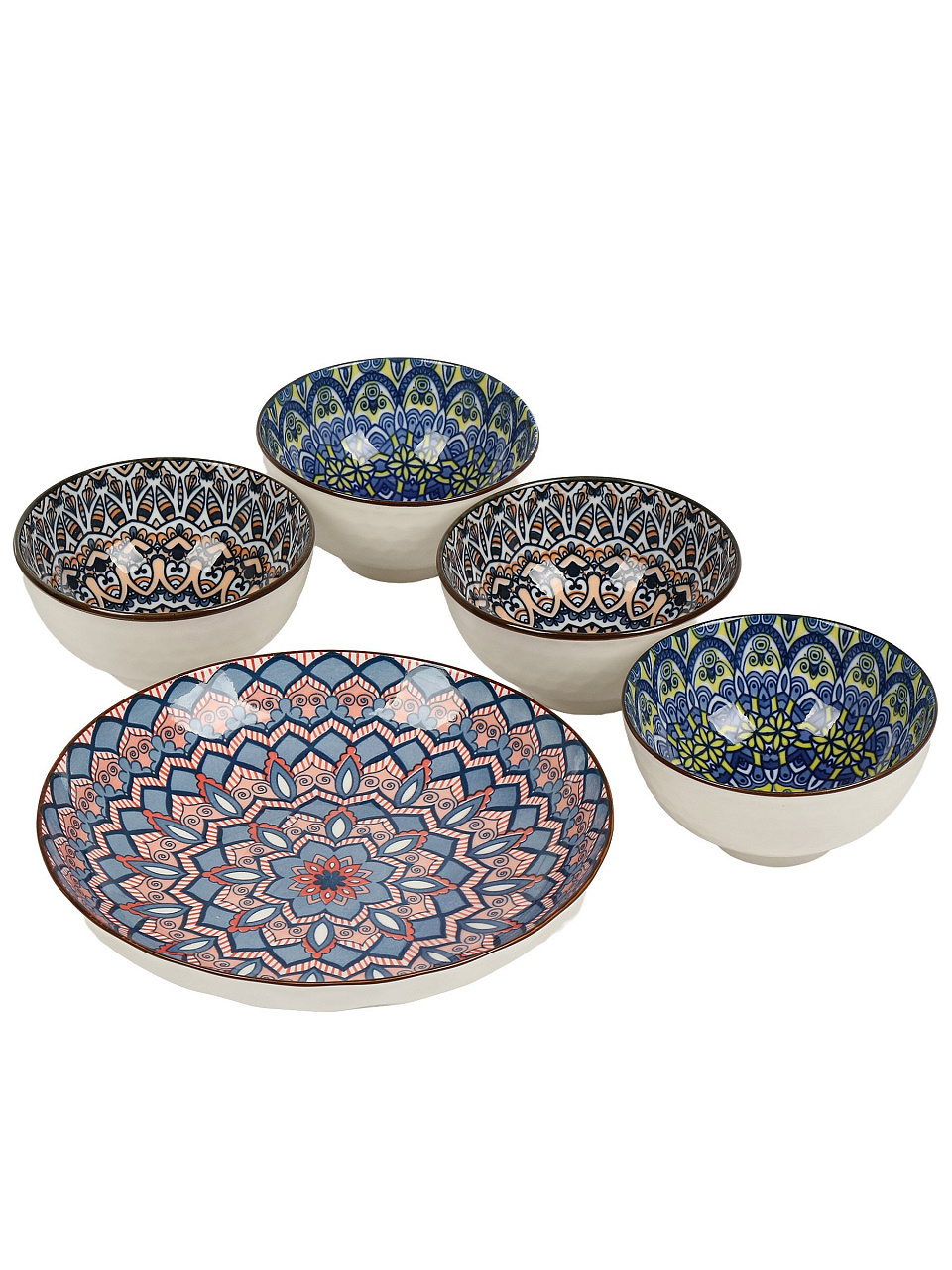Набор салатников Восток — 5 керамических мисок для сервировки и хранения, современный стиль, подарочная упаковка, подходит для дома и дачи.