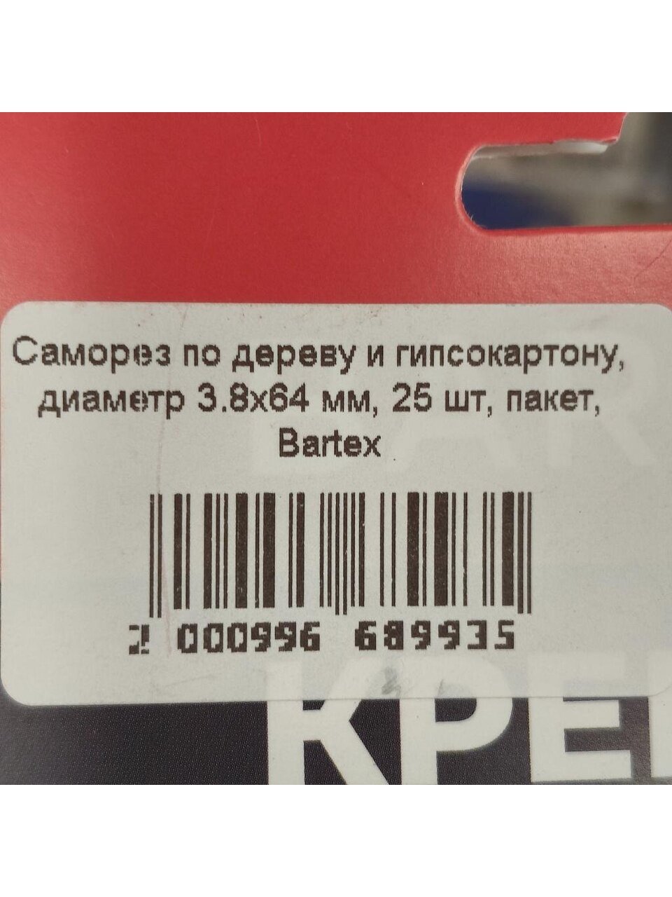 Вы можете приобрести «Саморез по дереву и гипсокартону, диаметр 3.8х64 мм, 25 шт, пакет, Bartex» и другие товары в нашем интернет-магазине в Таганроге по низким ценам и с бесплатным самовывозом.