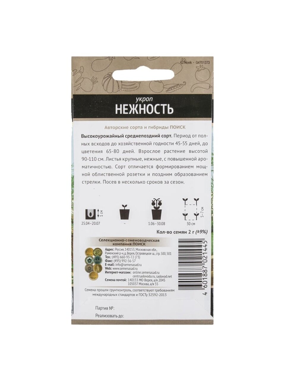 Вы можете приобрести «Семена Укроп, Нежность, 2 г, цветная упаковка, Поиск» и другие товары в нашем интернет-магазине в Воронеже по низким ценам и с бесплатным самовывозом.