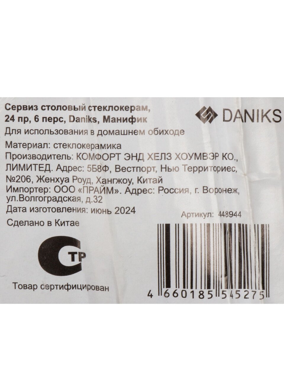 Вы можете приобрести «Сервиз столовый стеклокерамика, 24 предмета, на 6 персон, Daniks, Манифик» и другие товары в нашем интернет-магазине в Санкт-Петербургe по низким ценам и с бесплатным самовывозом.