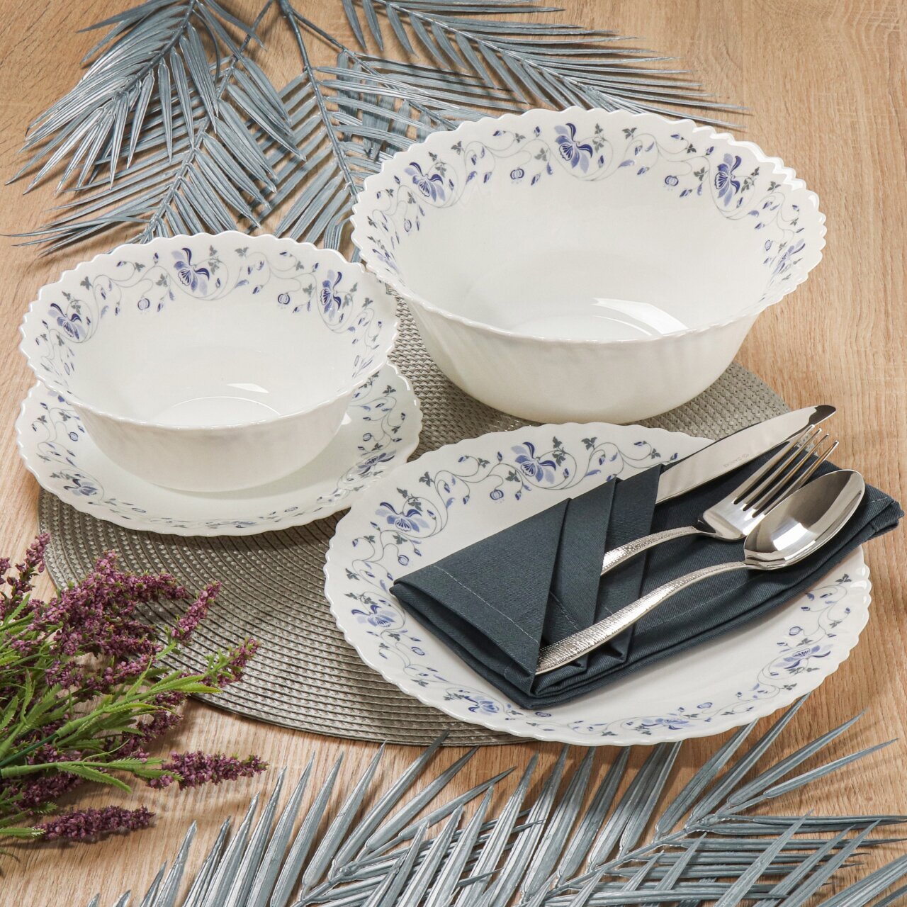 - Обеденный сервиз изготовлен из стеклокерамики, имеет стильный дизайн и качественно нанесенный рисунок.