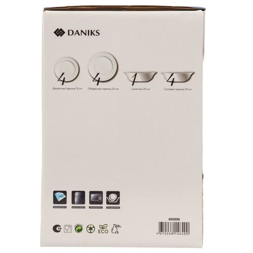 Сервиз столовый стеклокерам, 13 пр, 4 перс, Daniks, Бэль-2 — идеальное решение для создания стильной и уютной атмосферы на любом семейном ужине или праздничном застолье. Современный дизайн и универсальный белый цвет гармонично впишутся в любой интерьер кухни или столовой, подчеркнув изысканный вкус владельца. Прочная стеклокерамика гарантирует долговечность, устойчивость к царапинам и простоту ухода, что особенно ценно для ежедневного использования. В комплекте предусмотрено всё необходимое для сервировки на 4 персоны: десертные, обеденные и суповые тарелки, а также салатник. Такой набор станет отличным выбором для семьи или подарком близким.