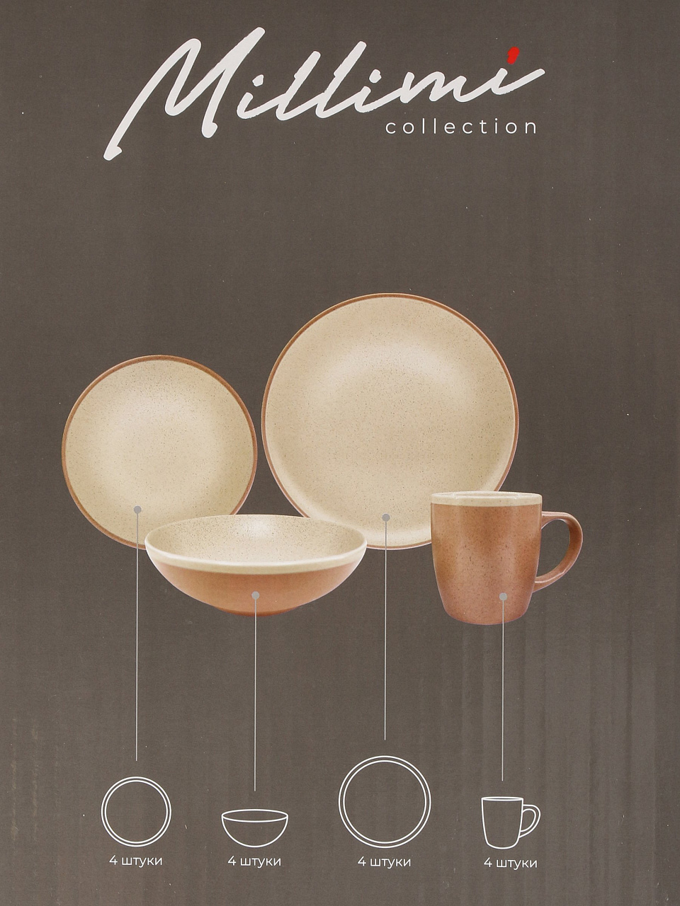 Сервиз столовый керамический Millimi 824-185 на 4 персоны: 16 предметов для стильных ужинов дома и на даче, подходит для посудомойки и СВЧ.