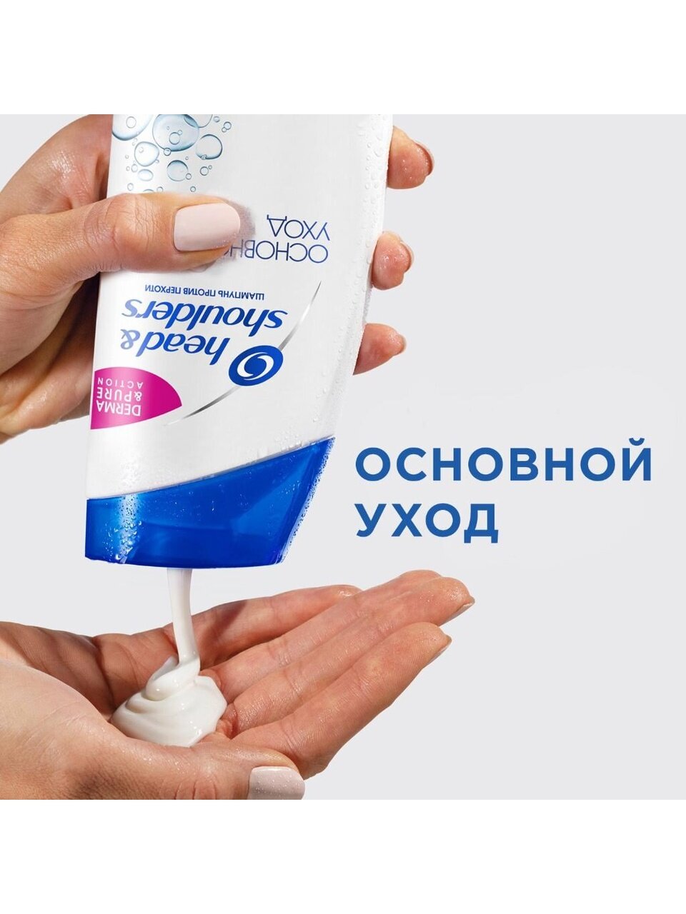 Шампунь и бальзам-ополаскиватель против перхоти Основной уход 2 в 1 эффективно очищает и увлажняет волосы. Высокоэффективная формула Derma&Pure борется с зудом, жирной и сухой кожей головы, предотвращая появление перхоти. Формула прекрасно увлажняет волосы и кожу головы, обеспечивая до 100% свободы от перхоти (видимые чешуйки, при регулярном использовании).
