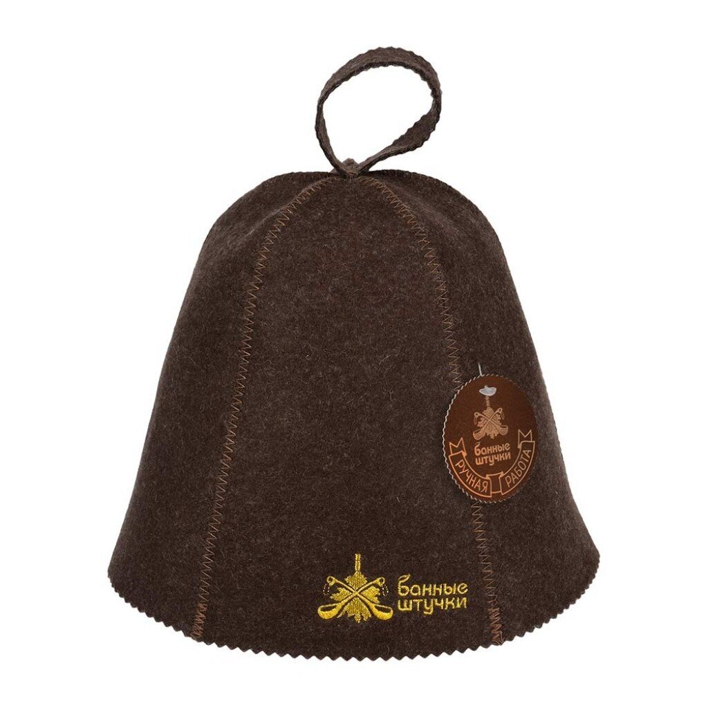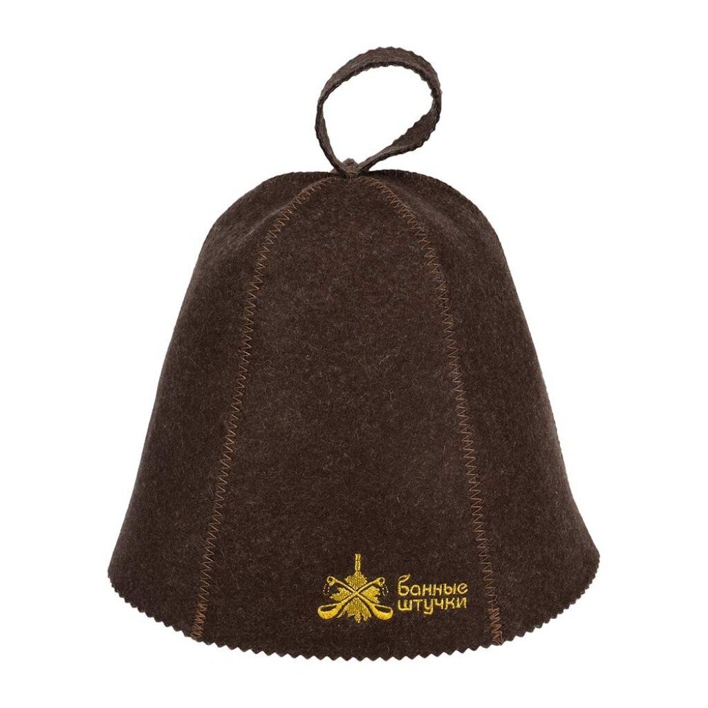 Изделие выполнено из плотного 100% войлока, цвет — коричневый, бренд — «Банные штучки», страна производства — Китай. Подходит для взрослых, не деформируется при стирке.