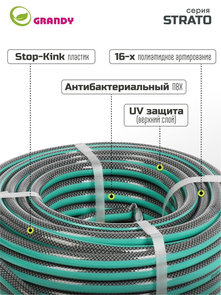 Идеальная форма шланга достигается благодаря неповторимой технологии армирования: нити располагаются под углом к горизонтали, что позволяет сохранить идеальный диаметр и длину изделия, предотвращая перекручивание и перегиб. Трехслойные стенки гарантируют долгую службу и безопасность использования на протяжении всего жизненного цикла шланга.