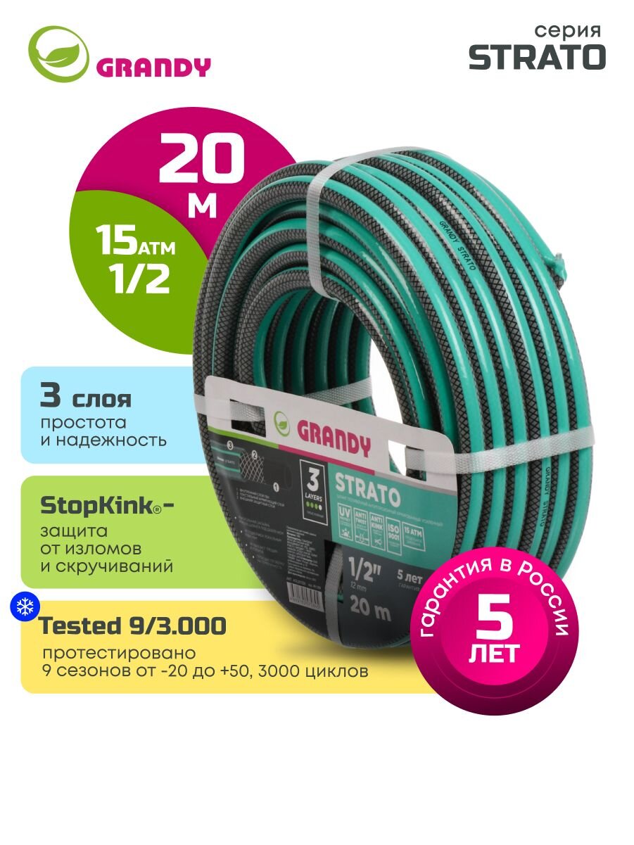 Вы можете приобрести «Шланг поливочный, 1/2 '', внутренний d12 мм, 15 атм, армированный, 20 м, 3 слоя, Grandy, Strato, ПВХ, AGL251220» и другие товары в нашем интернет-магазине в Серпухове по низким ценам и с бесплатным самовывозом.