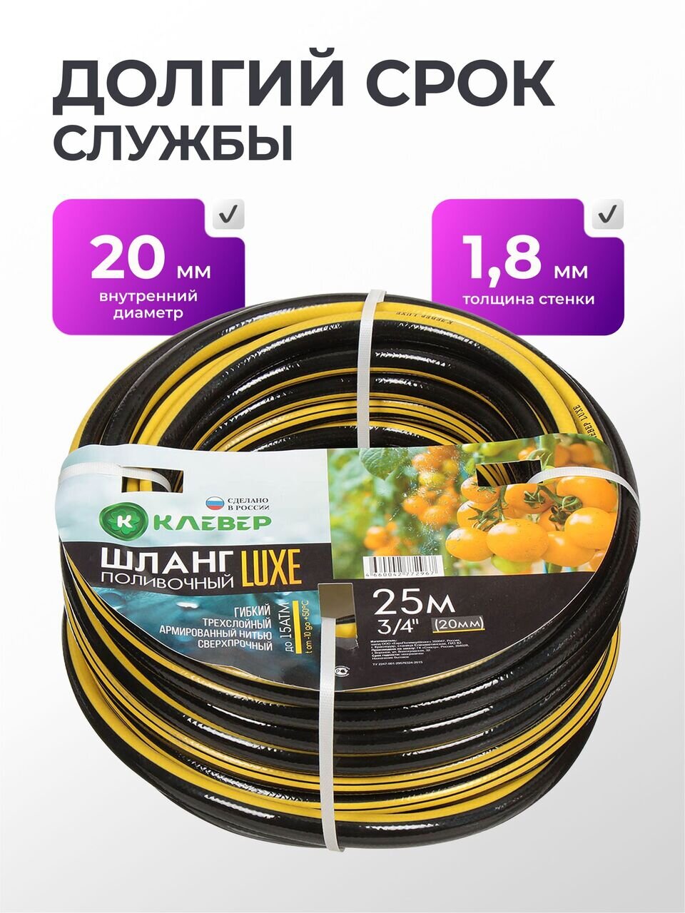 Вы можете приобрести «Шланг поливочный, 3/4 '', 20 мм, 15 атм, армированный, 25 м, 3 слоя, Клевер, Люкс, ПВХ, черно-желтый» и другие товары в нашем интернет-магазине в Курске по низким ценам и с бесплатным самовывозом.