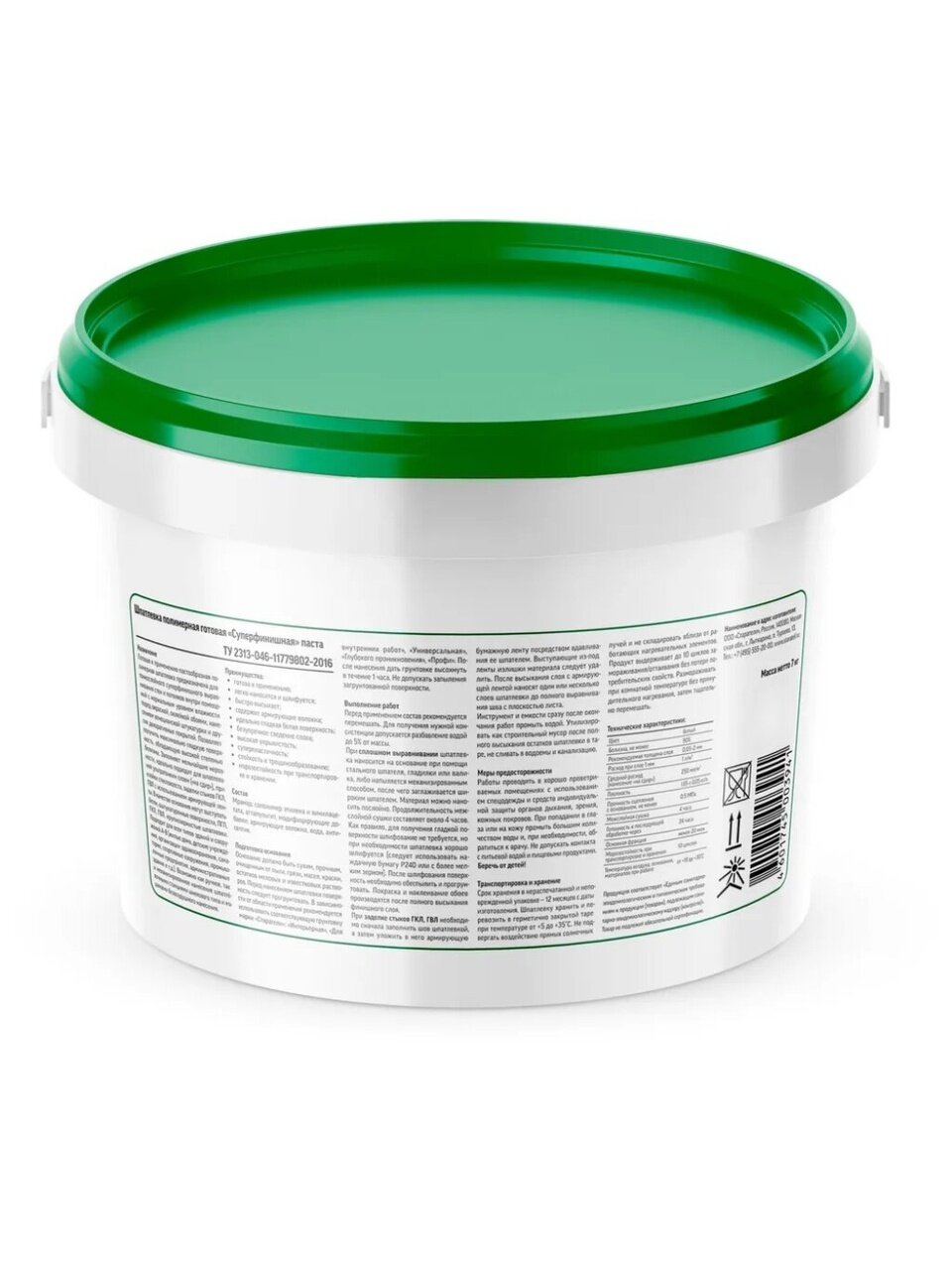 Готовая к применению пастообразная полимерная шпатлевка предназначена для тонкослойного суперфинишного выравнивания стен и потолков внутри помещений с нормальным уровнем влажности перед окраской, оклейкой обоями, нанесением венецианской штукатурки и других декоративных покрытий.