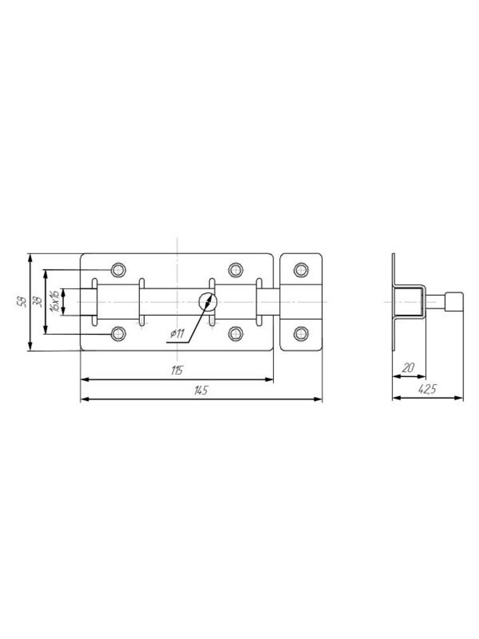 Задвижка выполнена из прочного металла с квадратным ригелем; стандартные размеры подходят для большинства дверей, цвет — серебро, артикул 2842. Толщина металла - 1.5 мм.