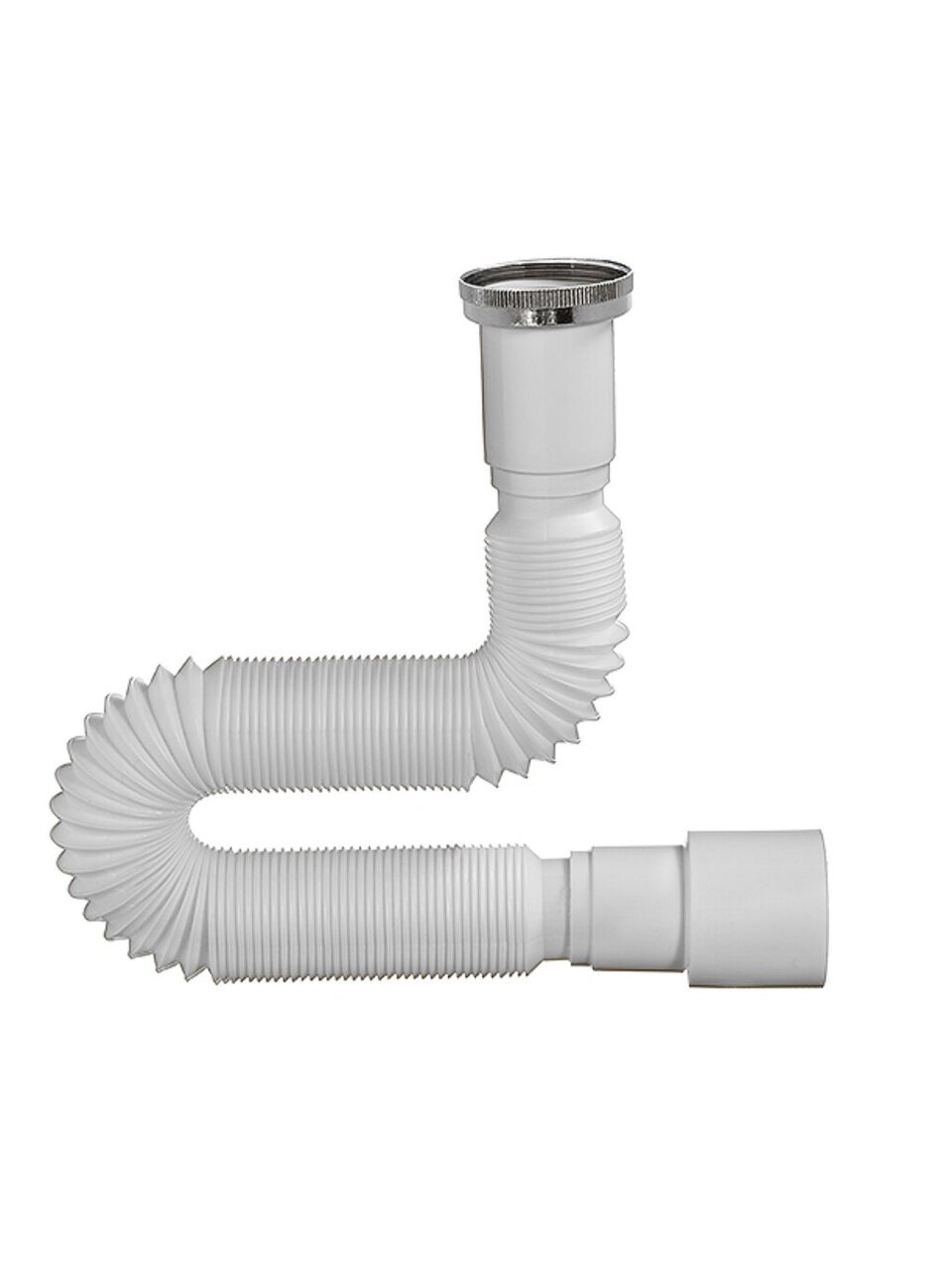 Гибкая гофрированная труба предназначена для слива воды из мойки или раковины. Она герметично соединяет сифон с канализационной сетью.
