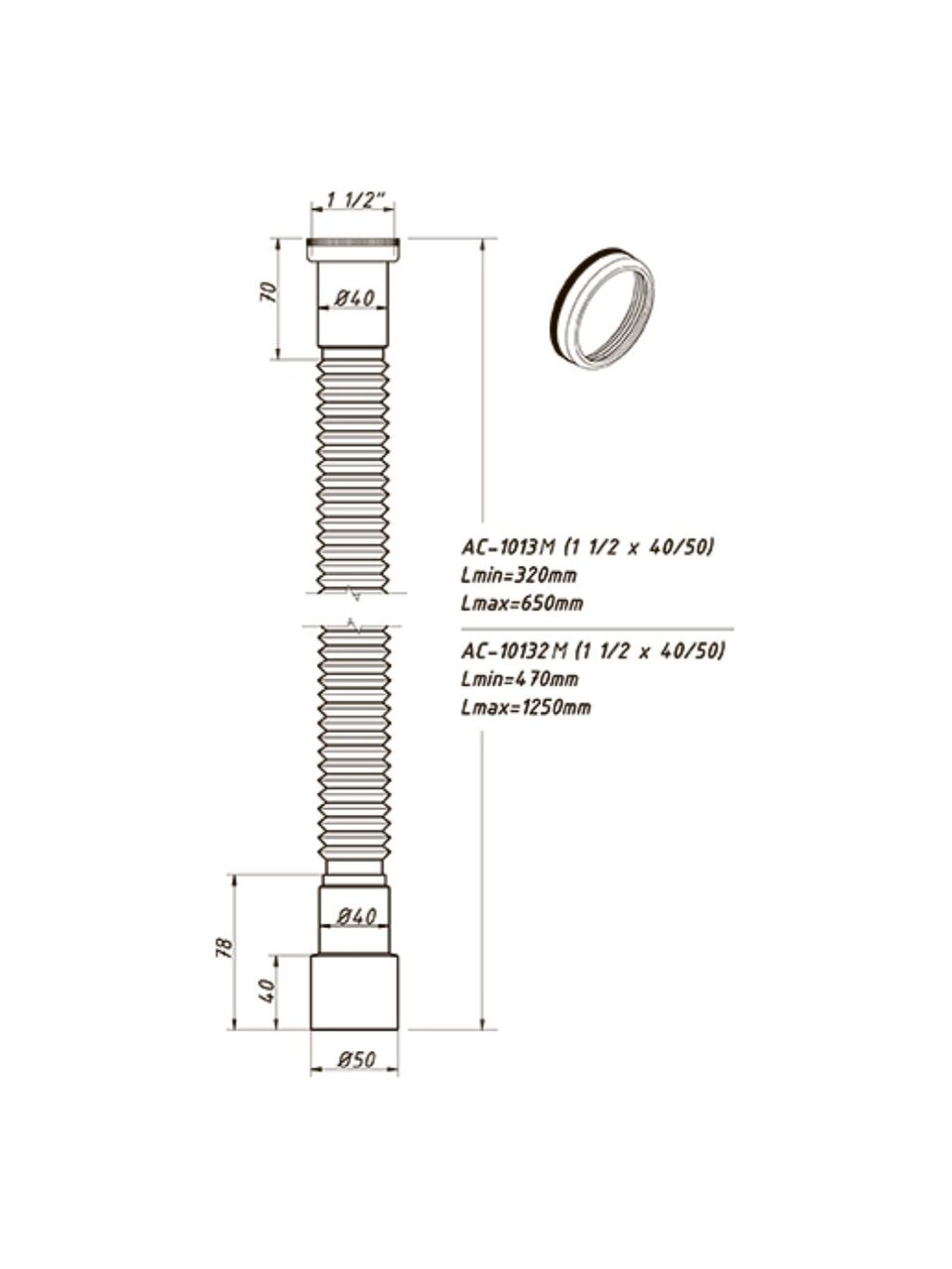 Вы можете приобрести «Гофра для сифона 650 мм, 1" 1/2х40/50, полипропилен, с гайкой, Orio, АС-10132М» и другие товары в нашем интернет-магазине в Старом Осколе по низким ценам и с бесплатным самовывозом.