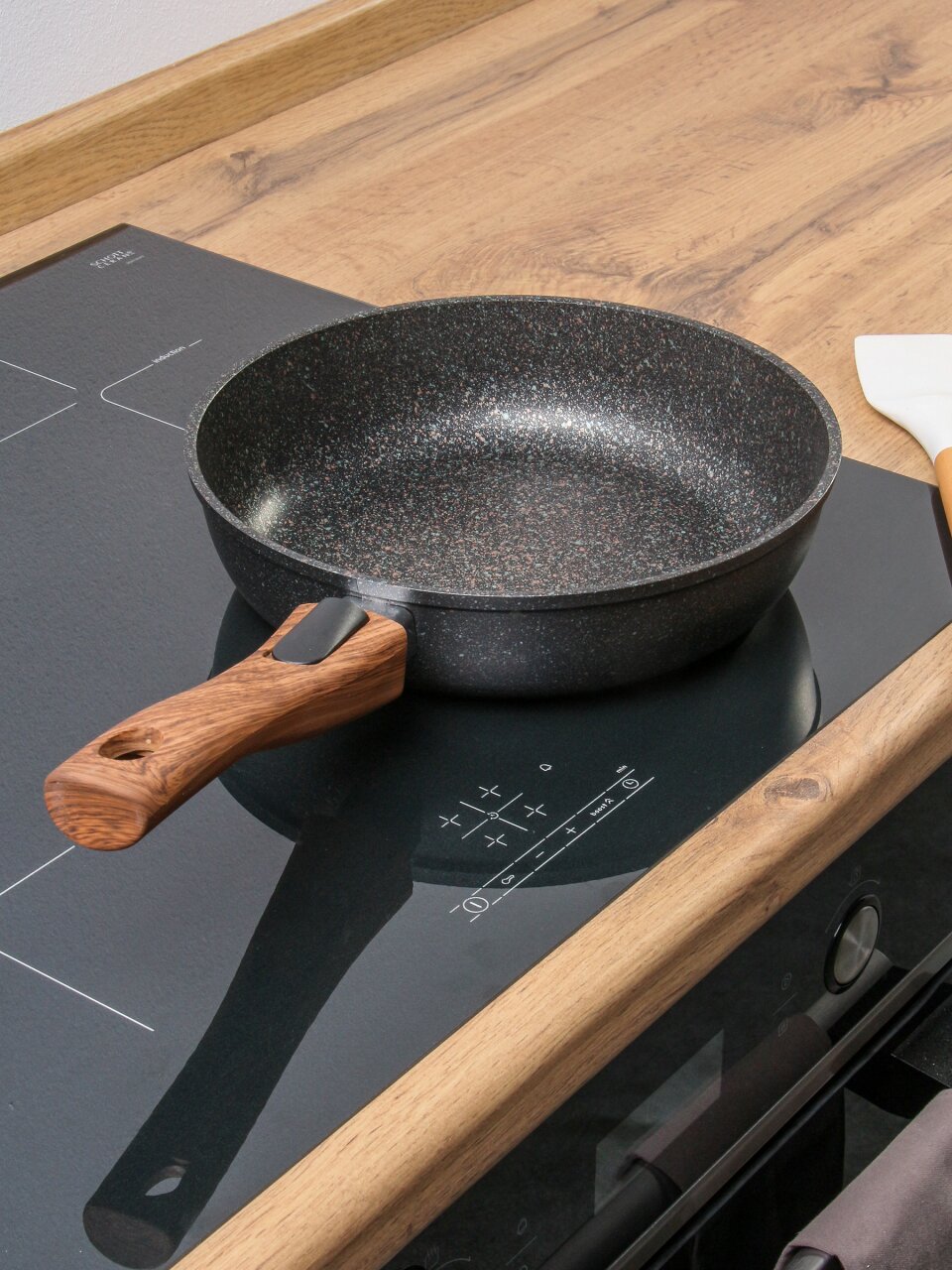 Диаметр рабочей поверхности — 24 см, материал — литой алюминий с антипригарным покрытием Granit Ultra Induction, толщина дна — 6 мм.