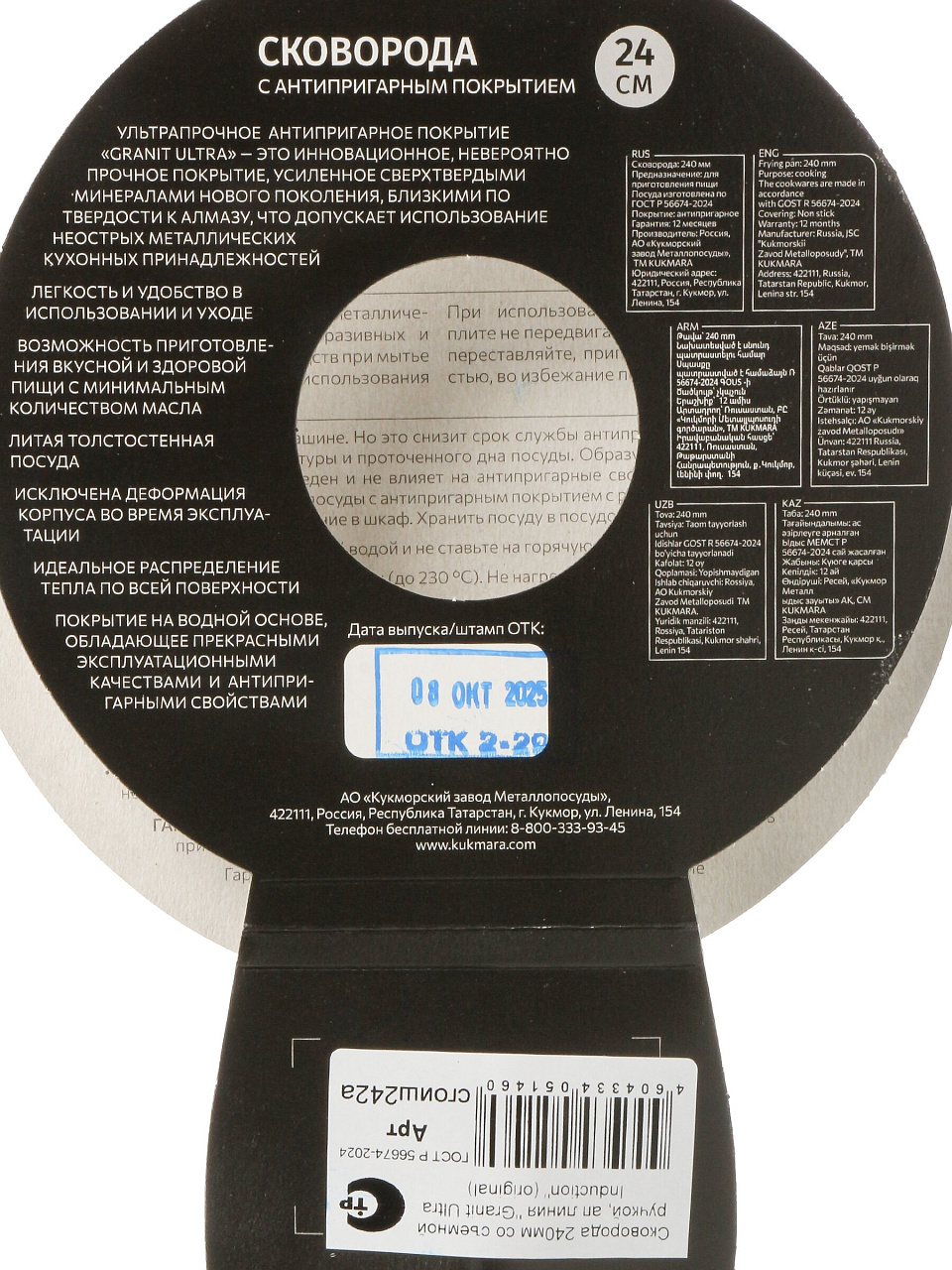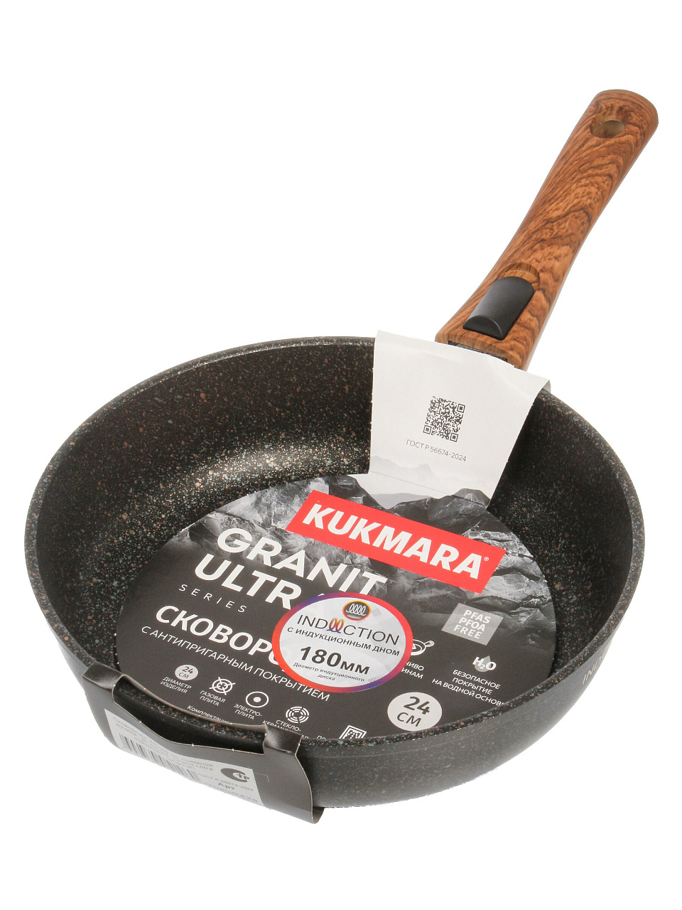 Сковорода Kukmara Granit Ultra Induction 24 см — антипригарная классика для индукции и любых плит. Съёмная ручка, долговечность, выгодная цена!