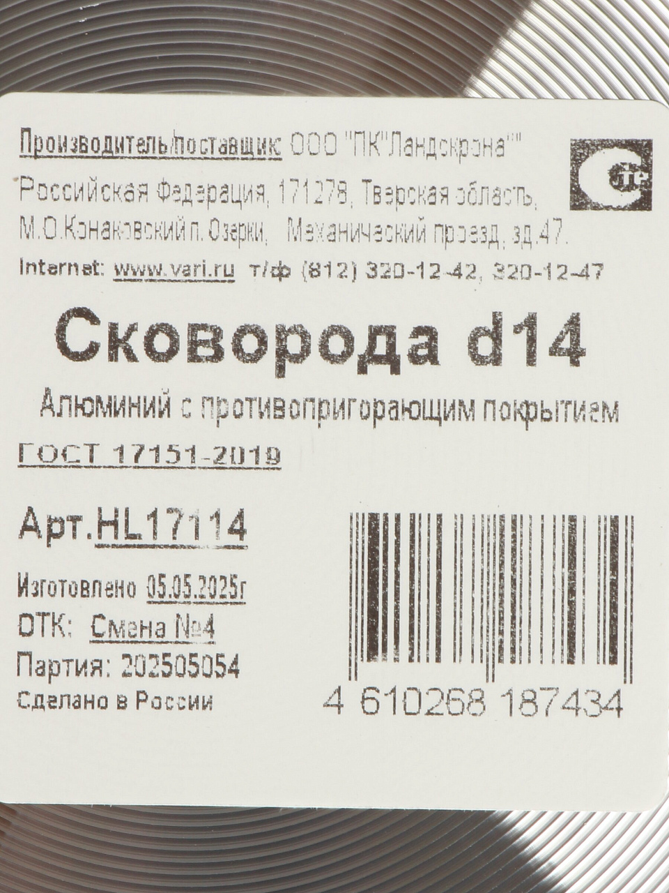- Компактный диаметр 14 см и легкий штампованный алюминий — удобно для одной порции, быстро нагревается, толщина дна и стенок 1,6 мм;