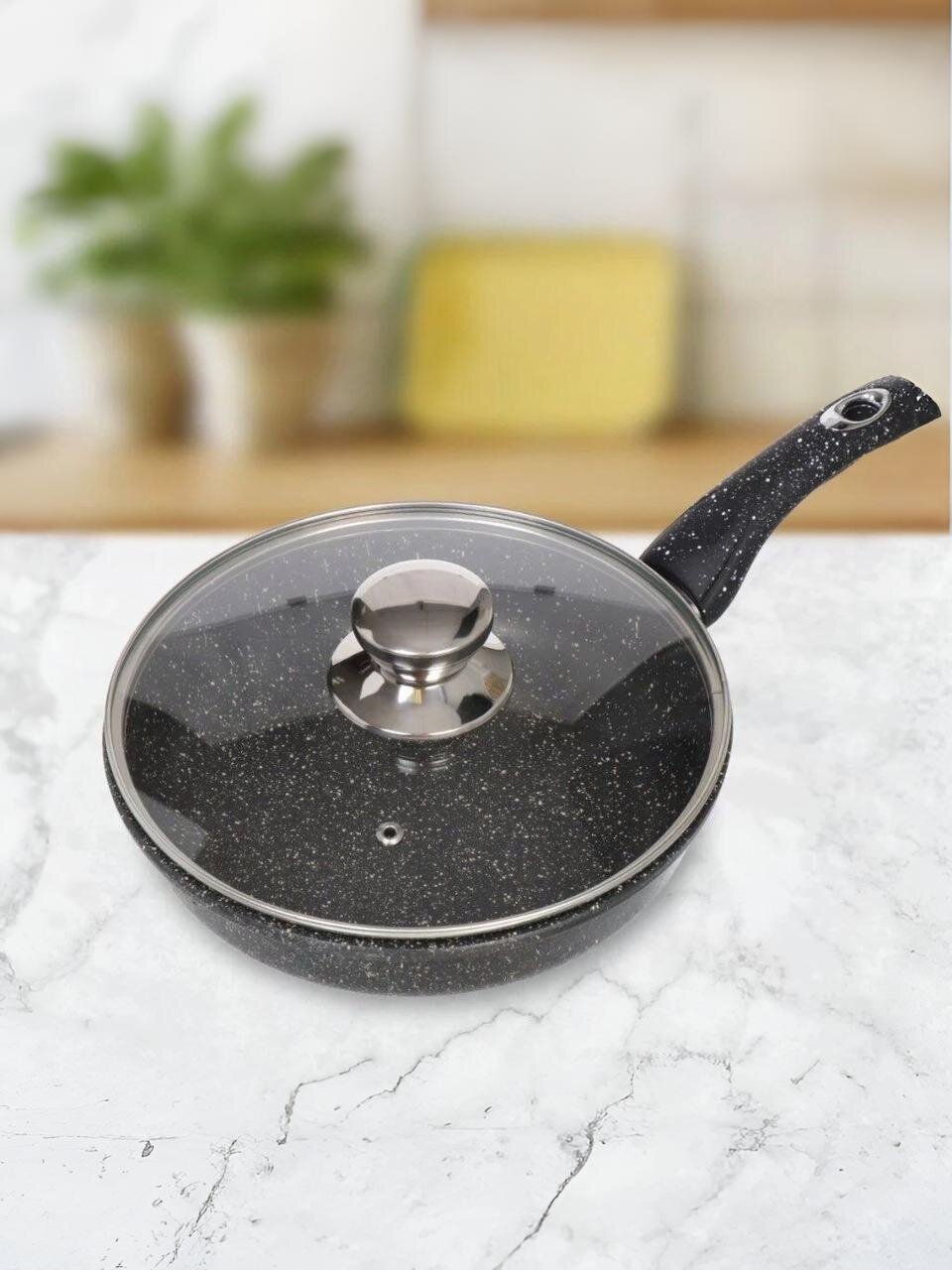 Литая сковорода Горница Гранит 22 см с антипригарным мраморным покрытием — долговечное решение для идеальной жарки и легкой уборки. В комплекте крышка.