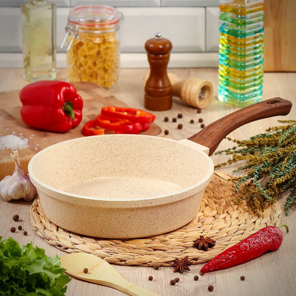 Сковорода 26 см из литого алюминия с гранитным антипригарным покрытием: идеальный выбор для индукции и универсальной готовки без пригорания.