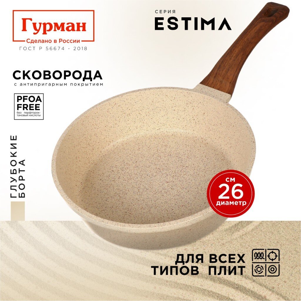 Вы можете приобрести «Сковорода литой алюминий, 26 см, антипригарное покрытие, Гурман, Estima, бежевая, индукция, ГМ2601 ЭБИ» и другие товары в нашем интернет-магазине в Россоши по низким ценам и с бесплатным самовывозом.