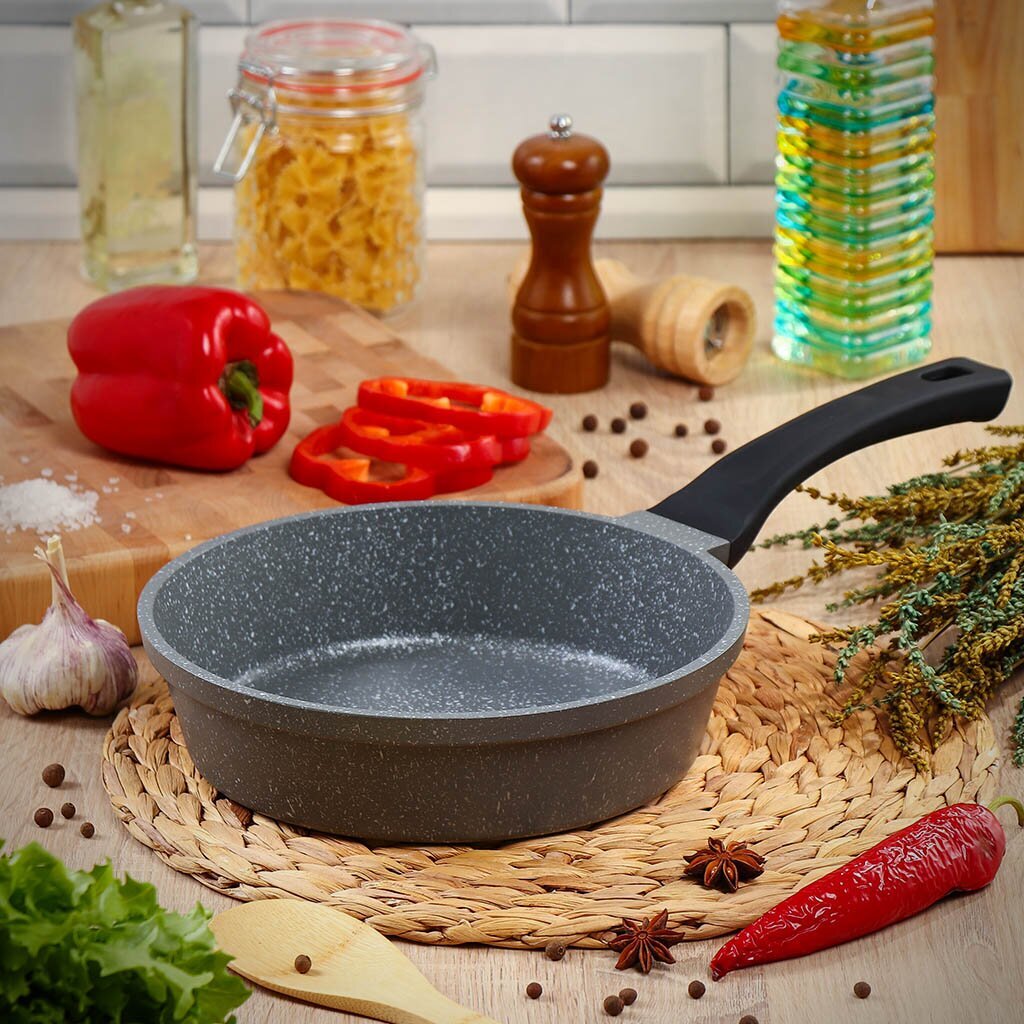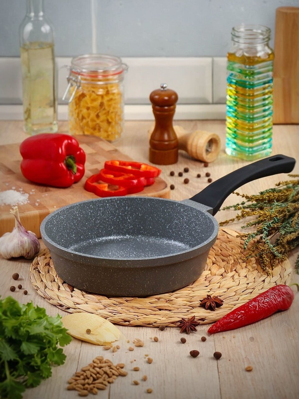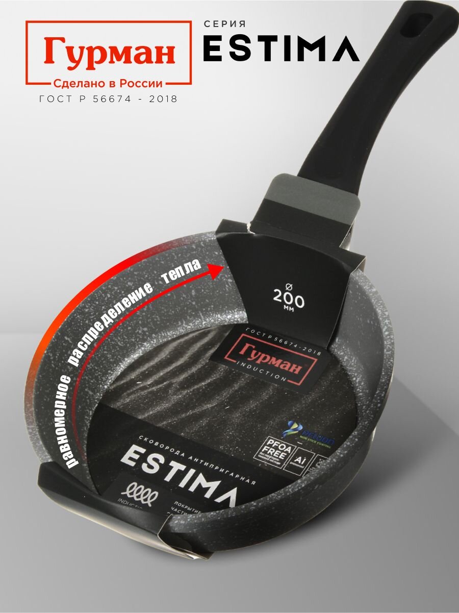 Сковорода 20 см из литого алюминия с гранитным антипригарным покрытием Estima: идеальный выбор для индукции, долговечность и лёгкая очистка.