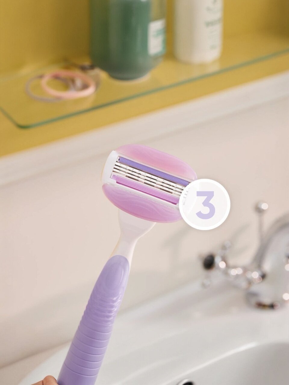 - 3 повторяющих изгибы тела острых лезвия для гладкого бритья.