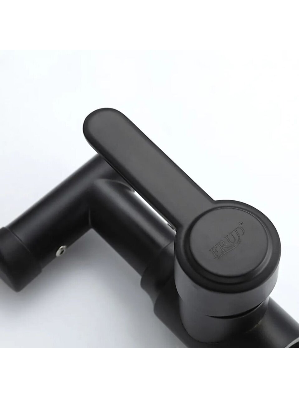 Смеситель для кухни Frud R10052-6: современный черный дизайн, надежная нержавеющая сталь и керамический картридж — долговечность и стиль для вашей кухни.