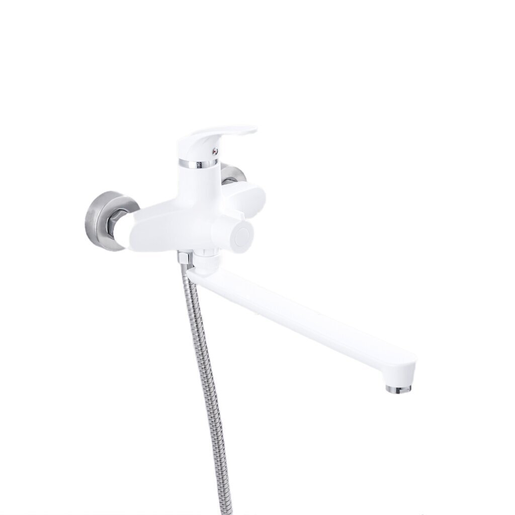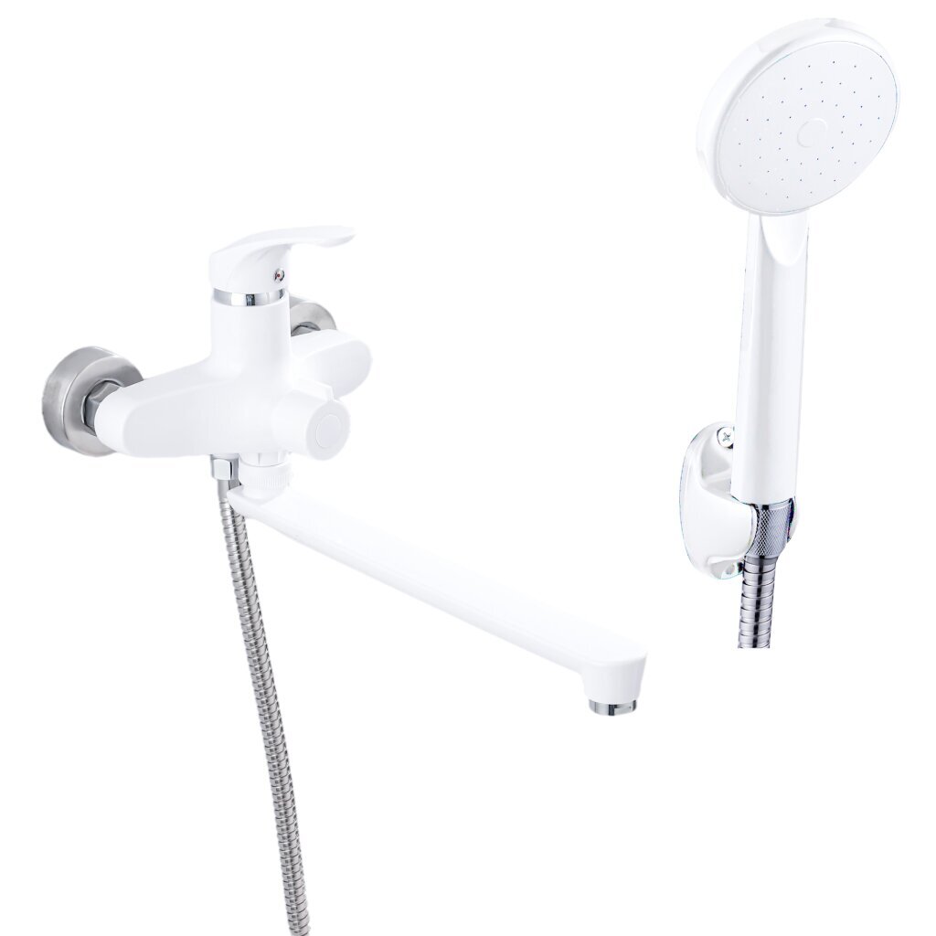 Смеситель для ванны Эверест B22-033: долговечный пластиковый корпус, керамический картридж, длинный поворотный излив 32 см — оптимальное решение для комфортного душа и экономии.